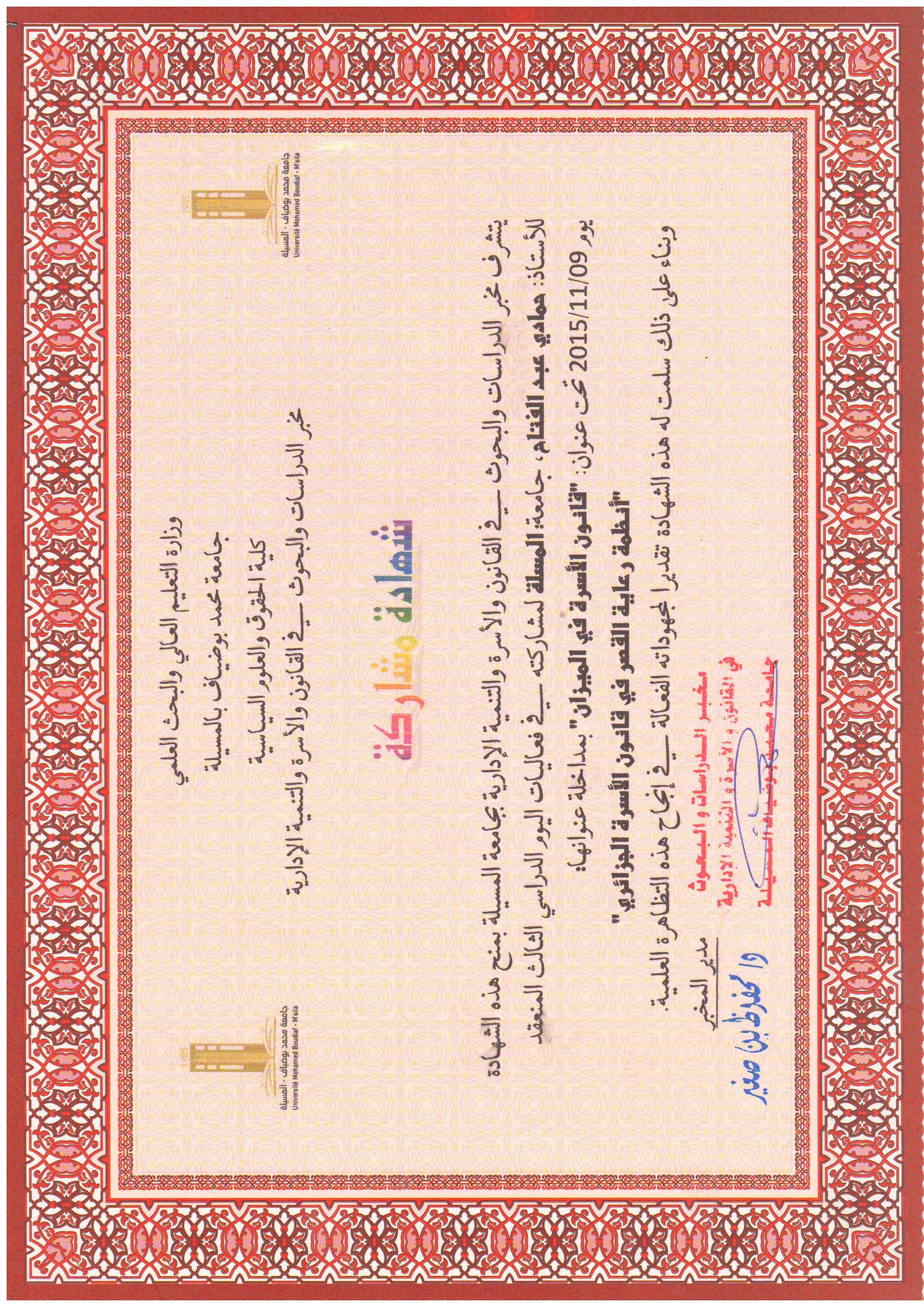 M. HAMADI Abdelfateh, (2015), "أنظمة رعاية القصر في قانون الأسرة الجزائري", [national] قانون الأسرة في الميزان , جامعة المسيلة