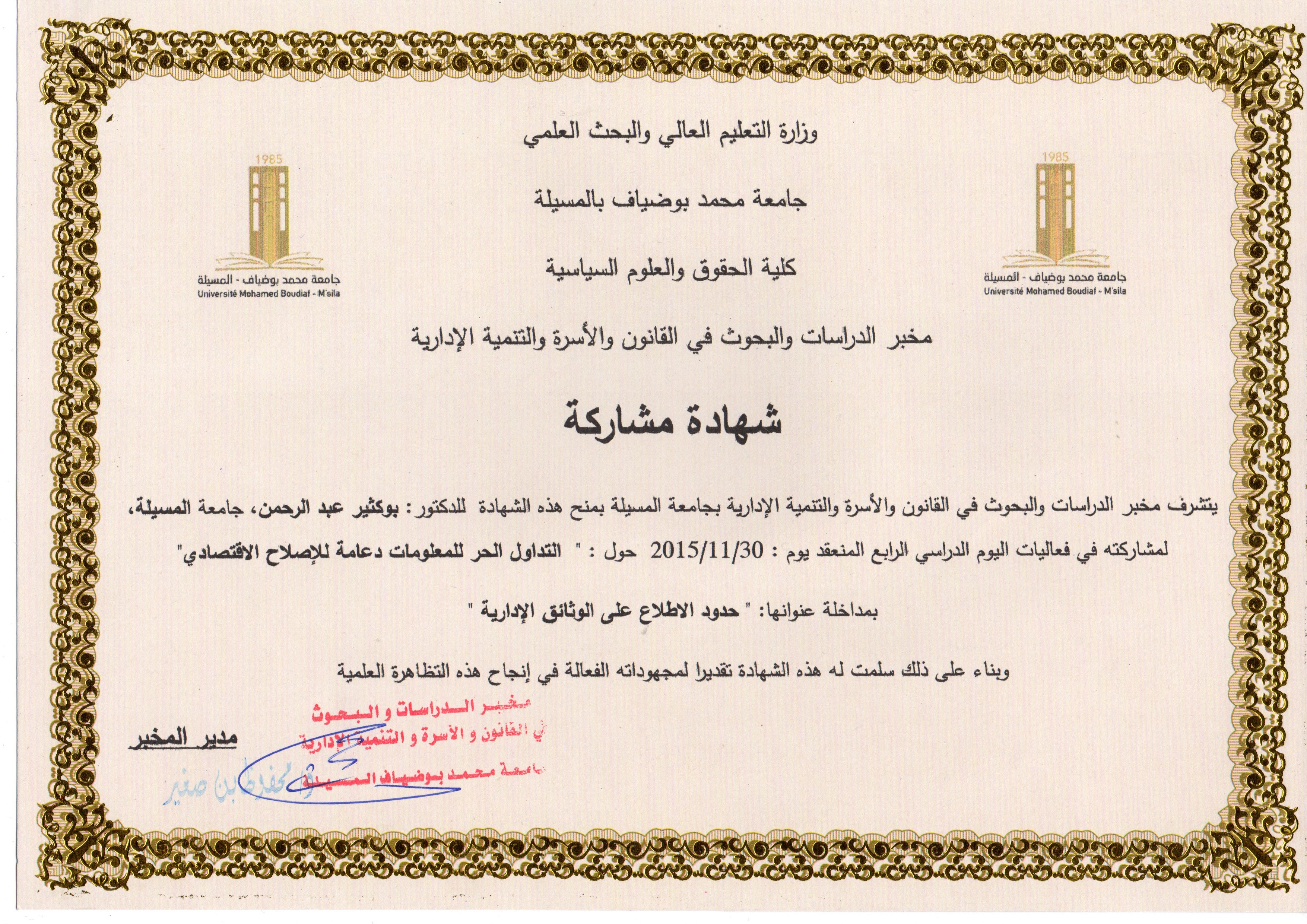 M. BOUKETIR Abderrahmane, (2014), "الحق في الاطلاع على الوثائق الإدرية", [national] بوكثير عبد الرحمن , جامعة مسيلة