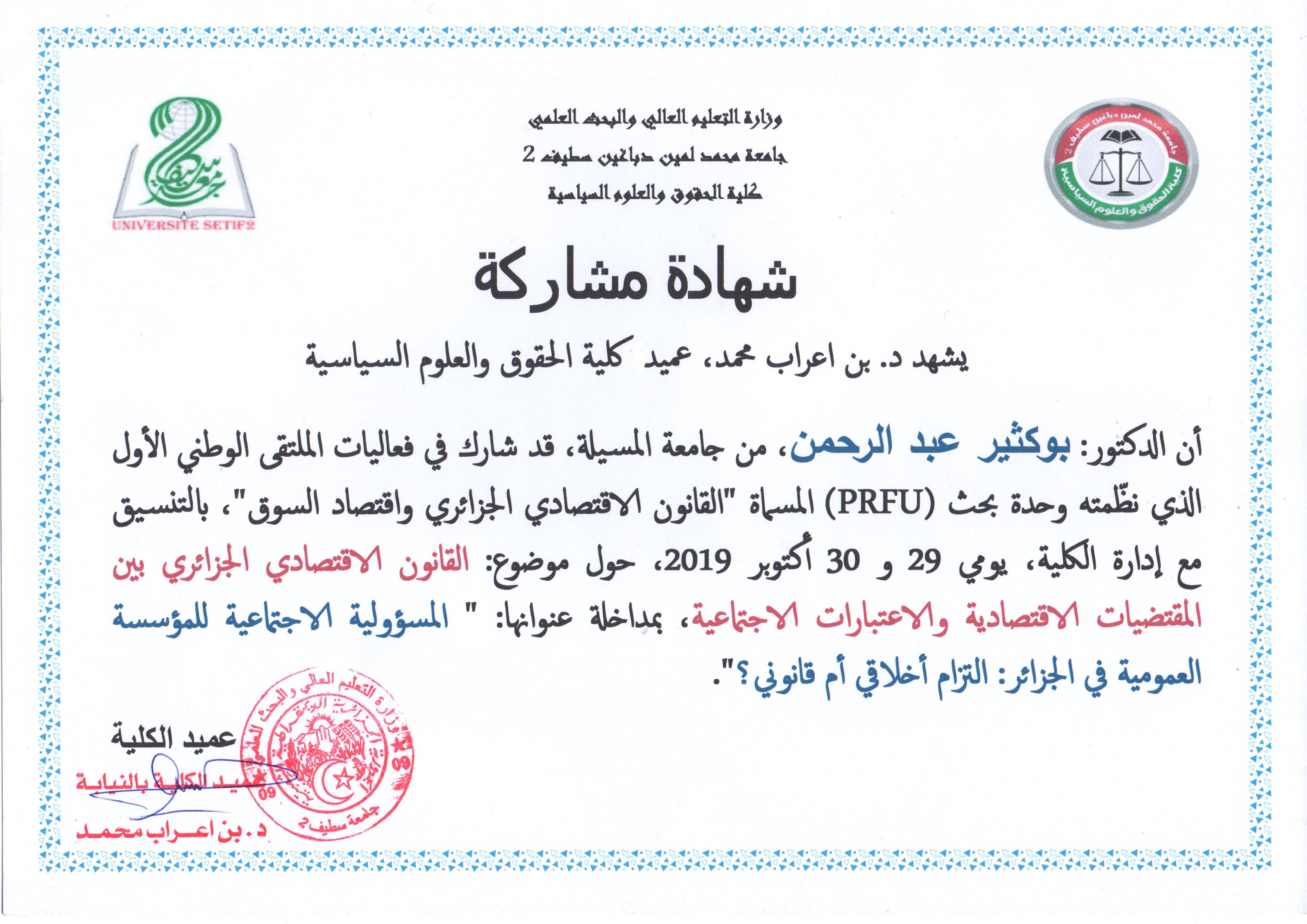 M. BOUKETIR Abderrahmane, (2019), "المسؤولية الاجتماعية للمؤسسات العمومية في الجزائر، التزام اخلاقي أم قانوني ؟", [national] القانون الاقتصادي الجزائري بين المقتضيات الاقتصادية والاعتبارات الاجتماعية , كلية الحقوق والعلوم السياسية، جامعة سطيف