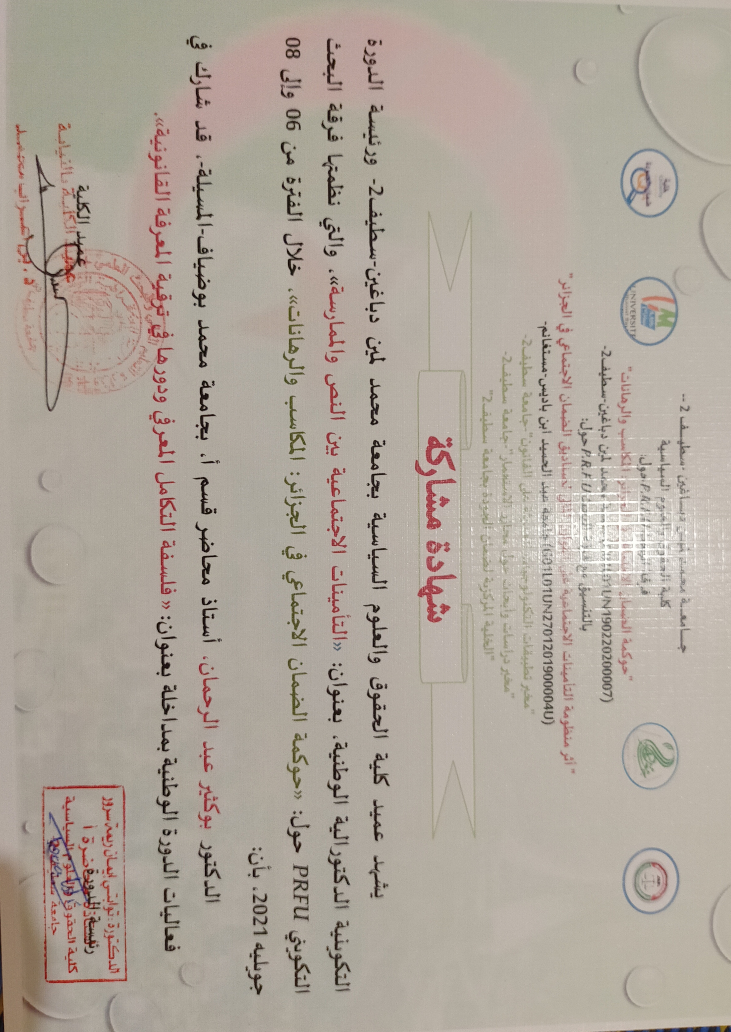 M. BOUKETIR Abderrahmane, (2021), "فلسفة التكامل المعرفي ودورها في ترقية المعرفة القانونية", [national] حوكمة الضمان الاجتماعي في الجزائر، المكاسب والرهانات , جامعة سطيف 2