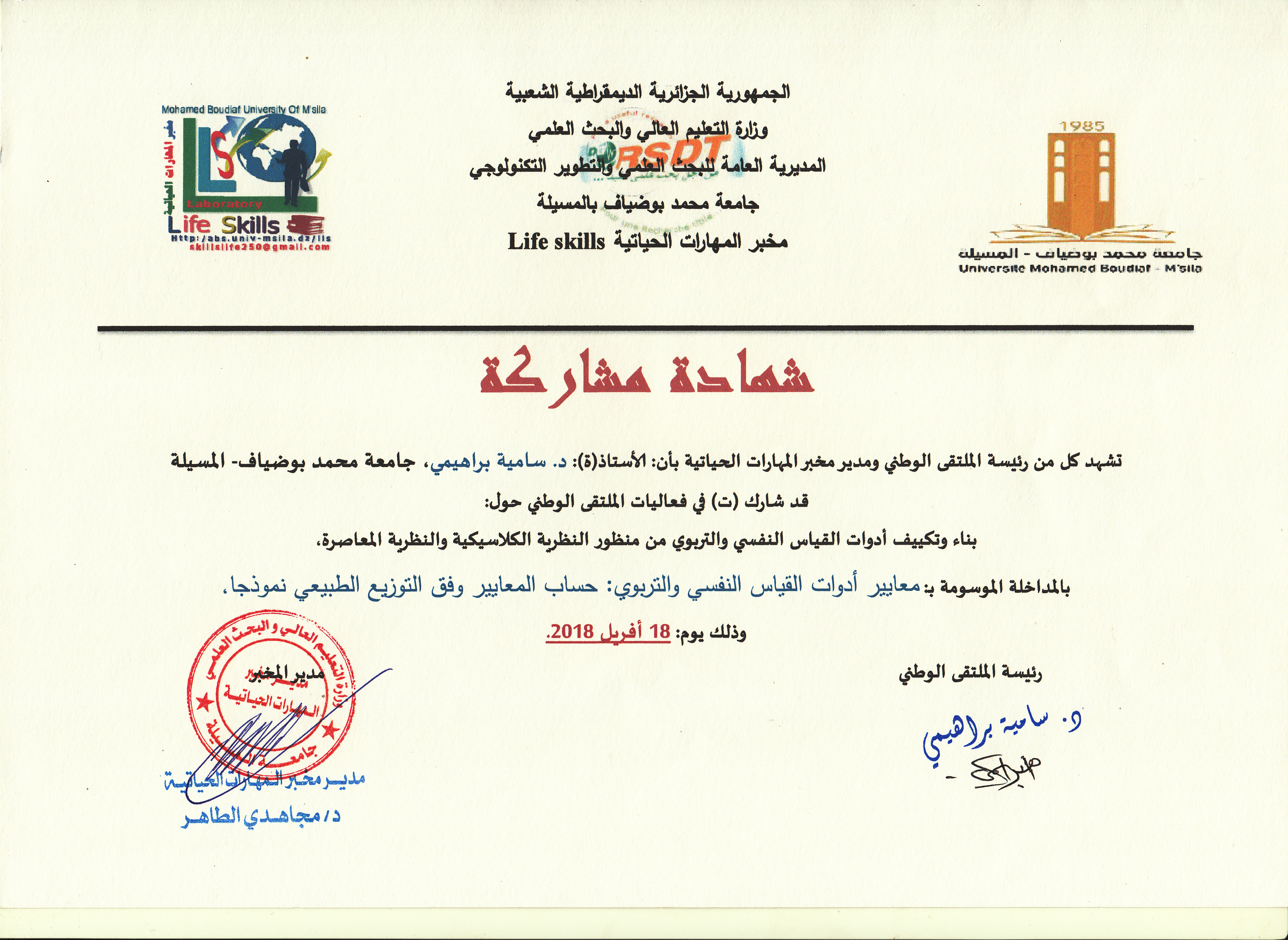 M. BRAHIMI Samia, (2017), "التقويم التربوي بين التنظير والتطبيق", [national] الندوة الوطنية الأولى حول التقويم التربوي بين المقاربات التقليدية والمقاربات الحديثة , جامعة محمد بوضياف- المسيلة