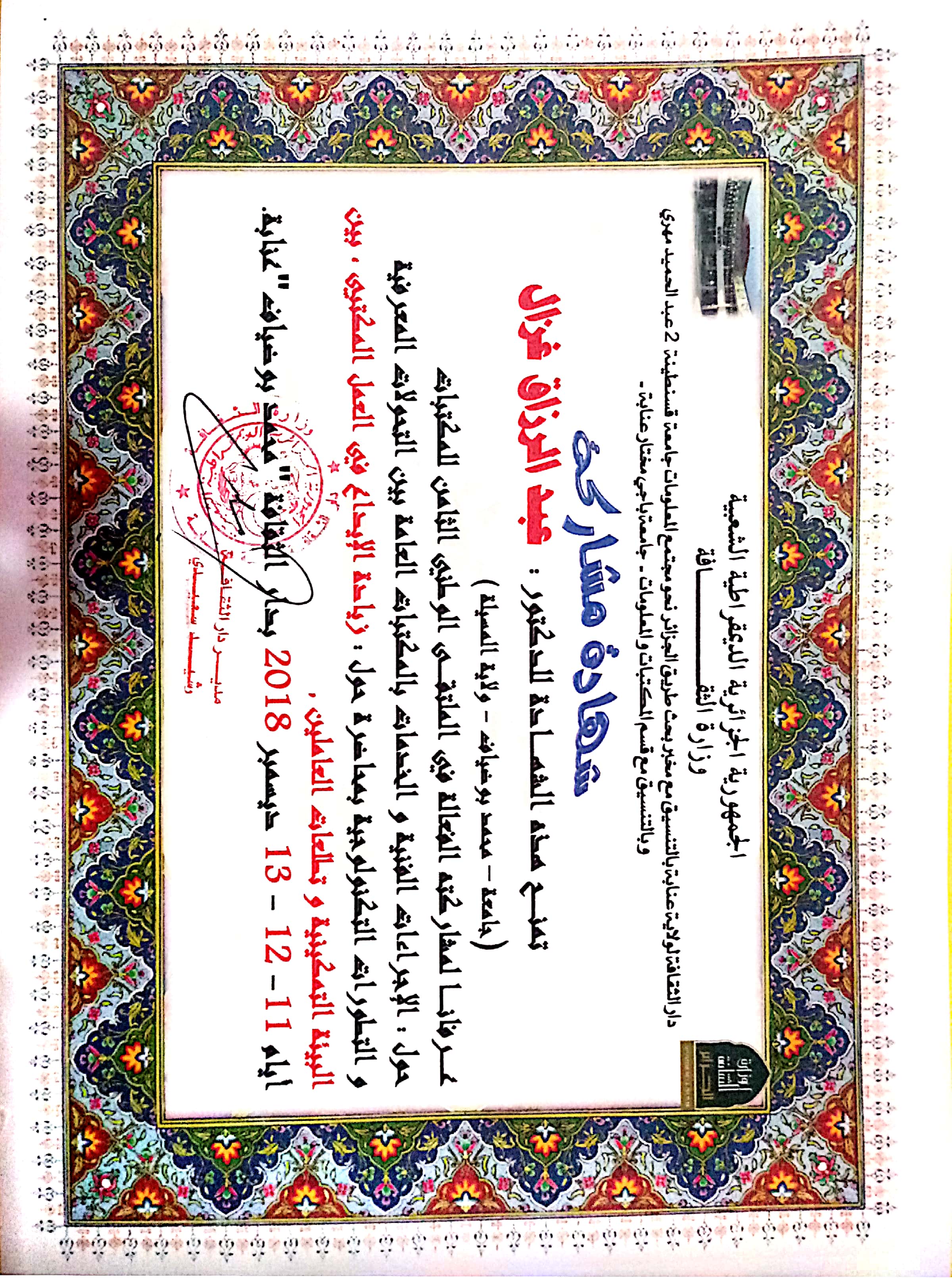 M. GHEZAL Abderrazzek, (2018), "المحتوى التراثي الرقمي", [international] المخطوط العربي الواقع والاافاق , جامعة المسيلة