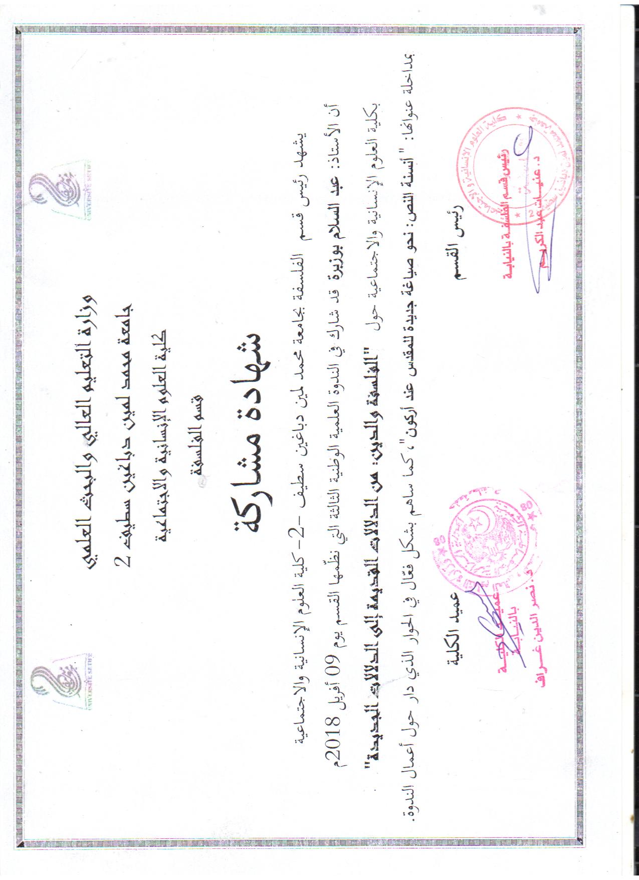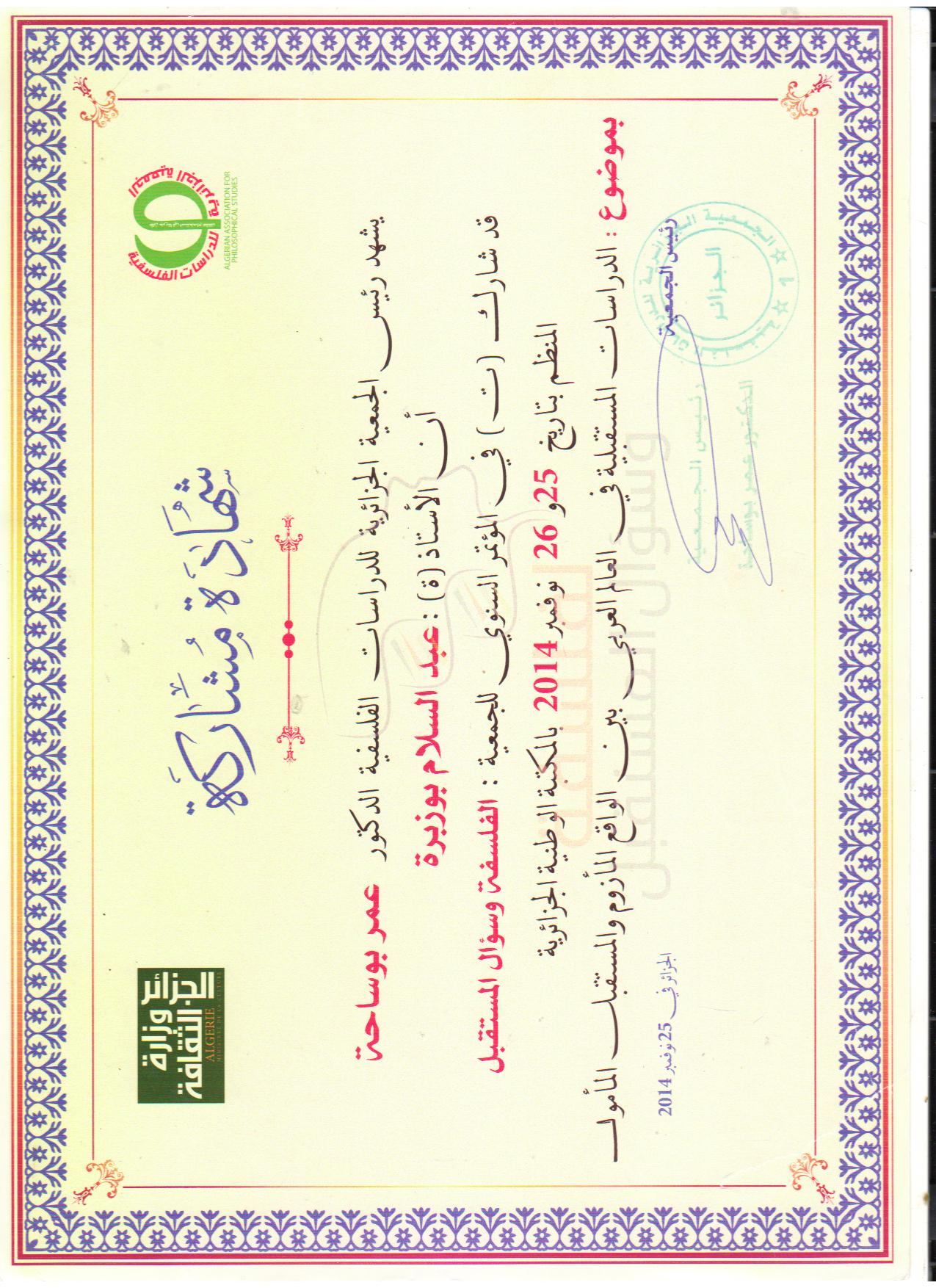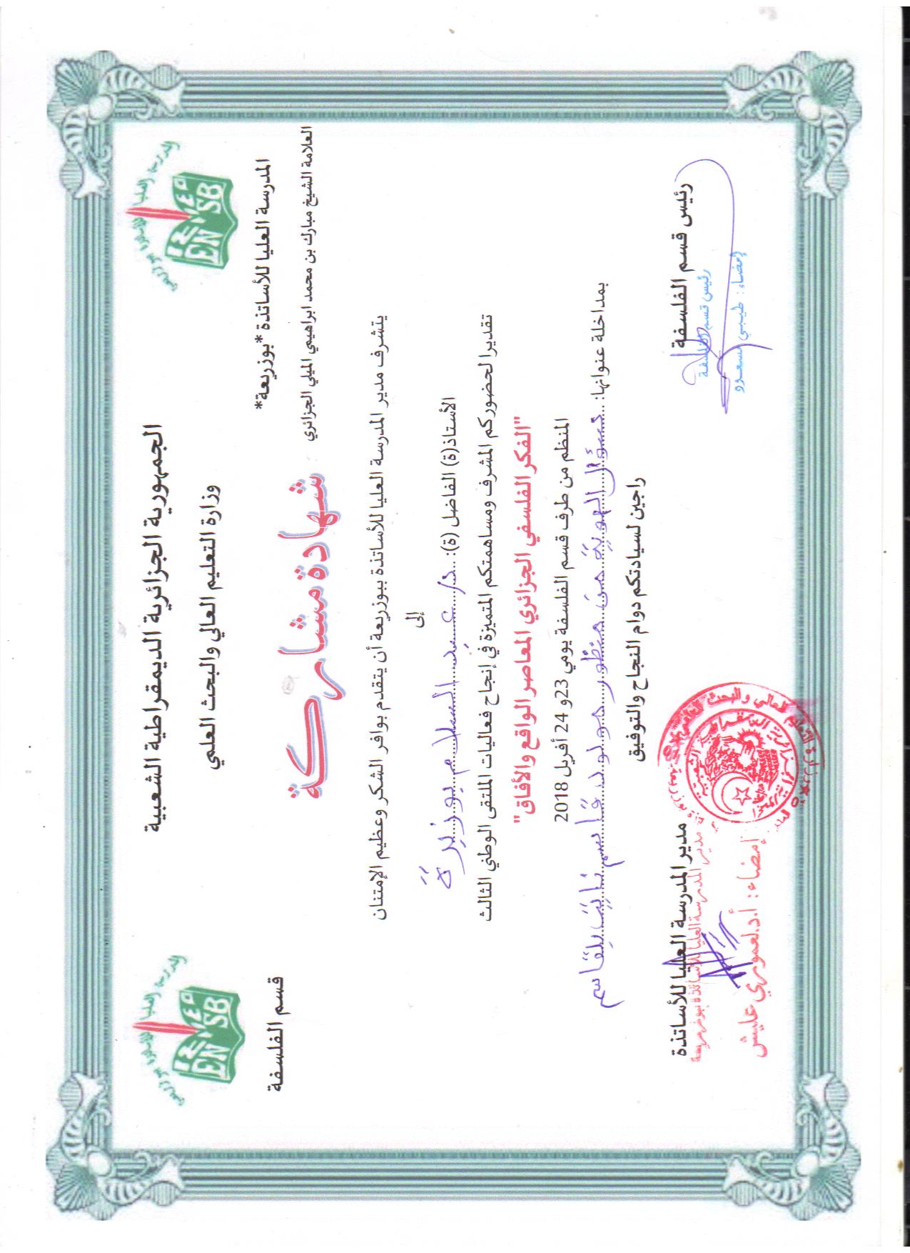 M. BOUZOBRA Abdeslem, (2012), "الفلسفة وسؤال الحرية", [national] الفلسفة وأسئلة العصر , كلية العلوم الإنسانية والاجتماعية جامعة المسيلة