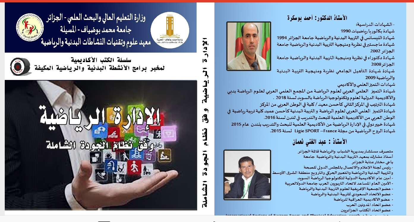 M. BOUSEKRA Ahmed, (2021), "الإدارة الرياضية وفق نظام الجودة الشاملة", [national] , سلسلة الكتب الاكادبمية