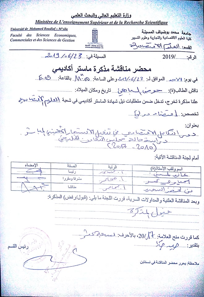 M. YAHIAOUI Amar, (2019), "دور التكامل الاقتصادي في تفعيل الاستثمار الأجنبي المباشر دراسة حالة مجلس التعاون الخليجي (2010-2017)", [national] حوض الباهي , جامعة محمد بوضياف المسيلة