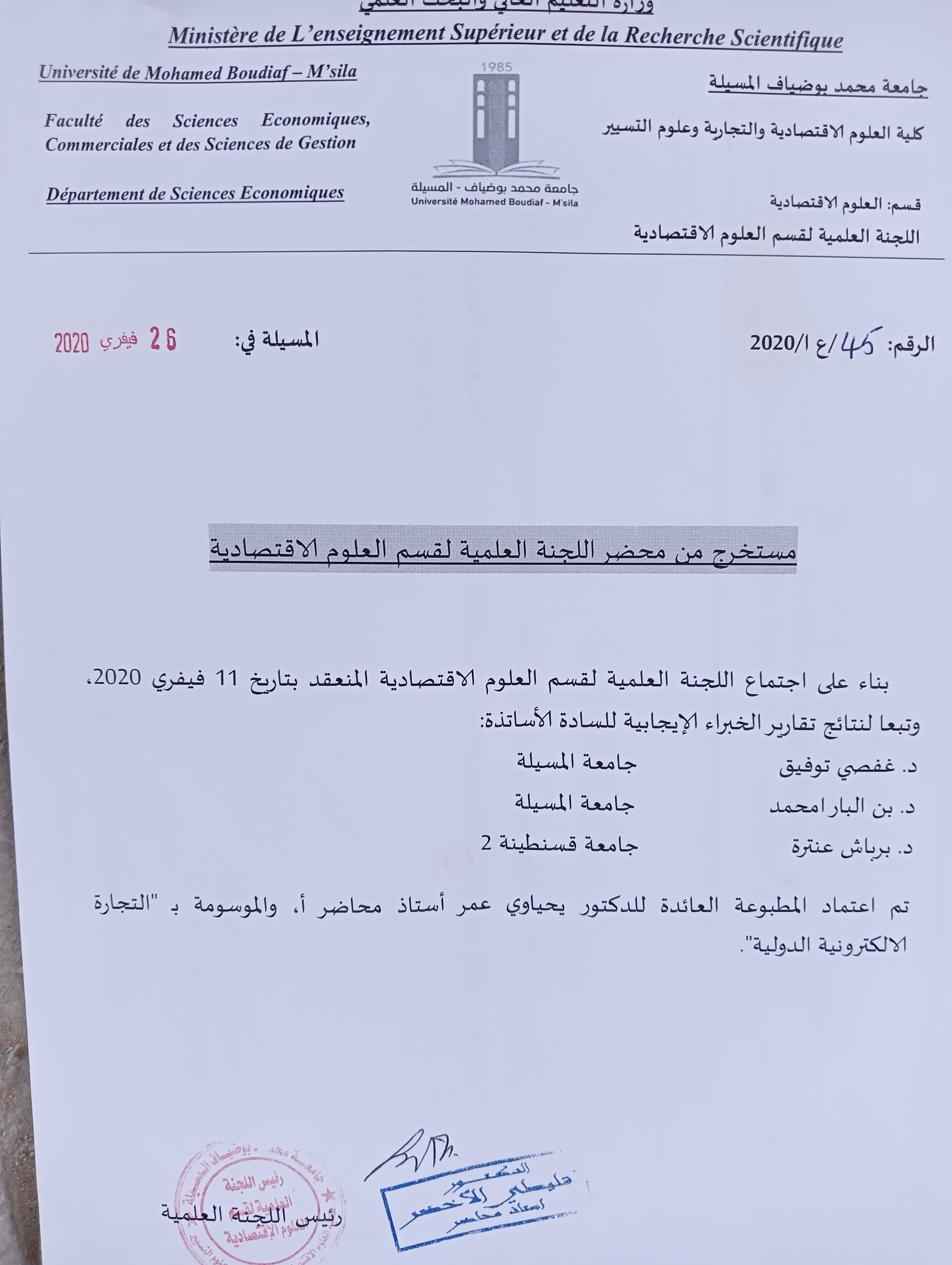 M. YAHIAOUI Amar, (2020), "مطبوعة التجارة الالكترونية الدولية", [national] جامعة محمد بوضياف المسيلة , جامعة بوضياف المسيلة