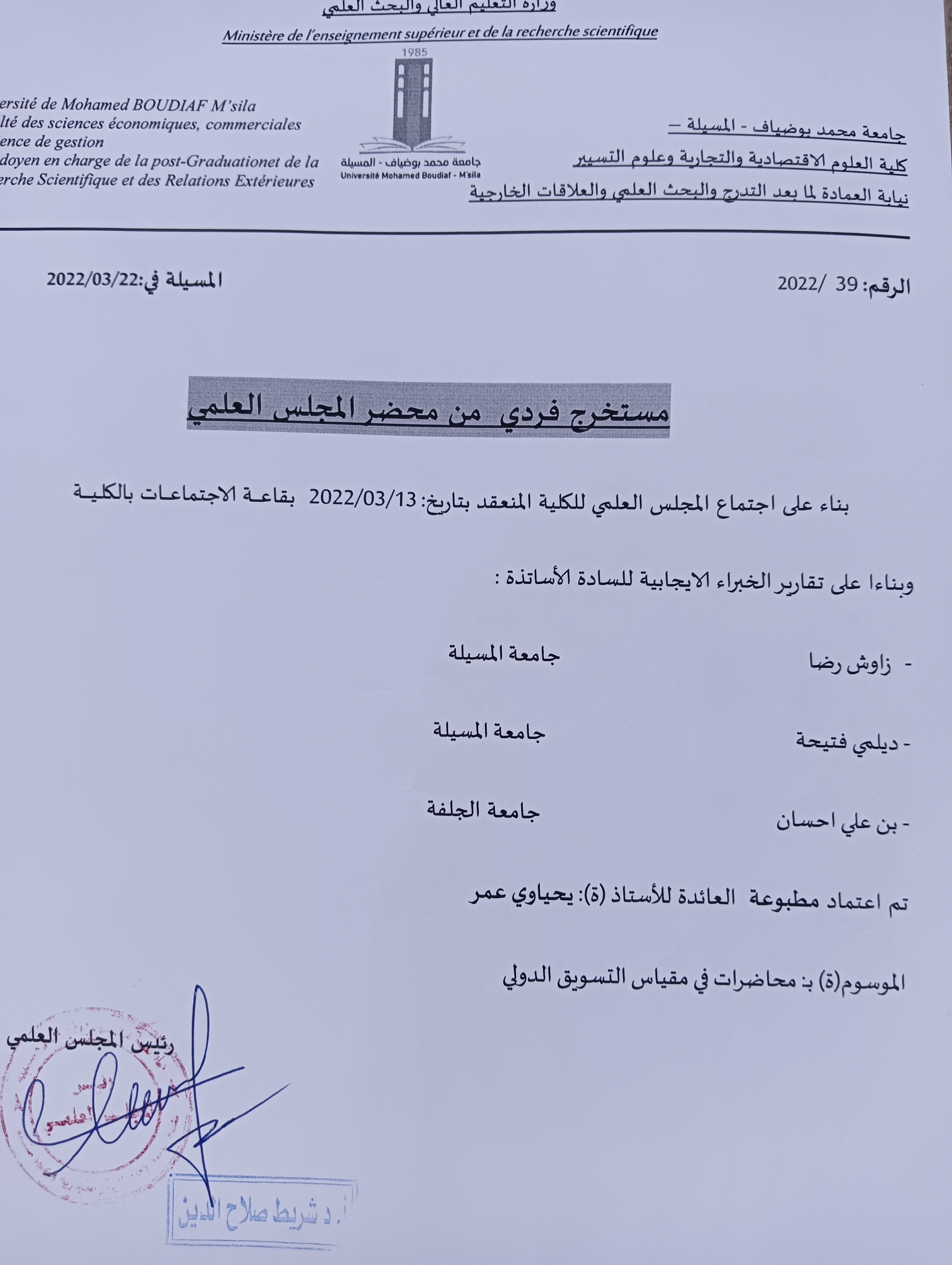 M. YAHIAOUI Amar, (2019), "محاضرات في ادارة الاعمال الدولية", [national] جامعة محمد بوضياف المسيلة , جامعة محمد بوضياف المسيلة