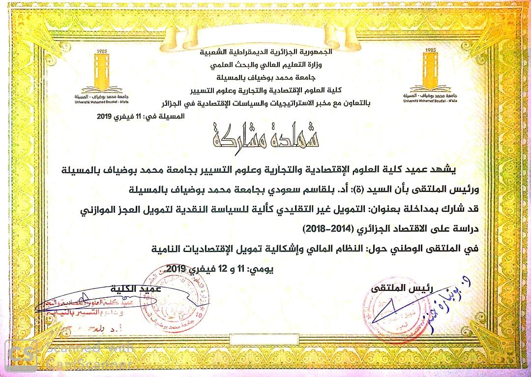 M. SAOUDI Belkacem, (2019), "التمويل غير التقليدي كألية للسياسة النقدية لتمويل العجز الموازني دراسة على الاقتصاد الجزائري (2014-2018)", [national] النظام المالي وإشكالية تمويل الاقتصاديات النامية , جامعة المسيلة