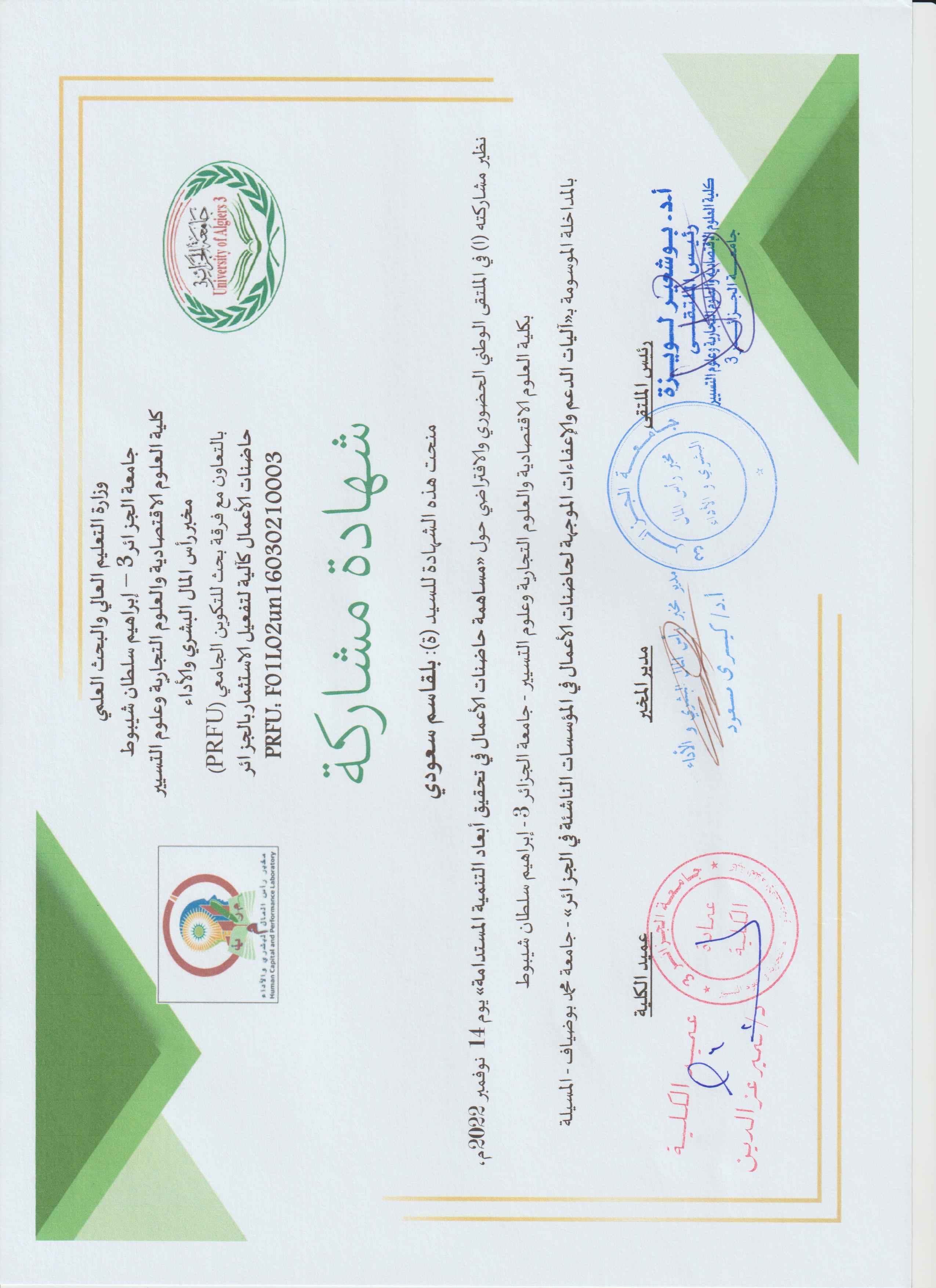 M. SAOUDI Belkacem, (2023), "دور الرقمنة في تفعيل نظم التداول الالكتروني", [national] التحول الرقمي والصناعة الاسلامية , جامعة الجزائر