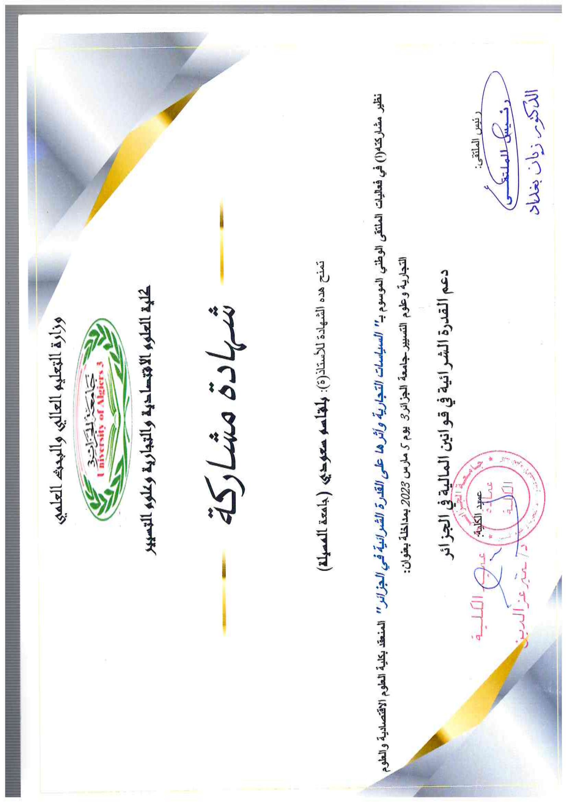 M. SAOUDI Belkacem, (2023), "القدرة الشرائية في قوانين المالية", [national] السياسات التجارية واثرها على القدرة الشرائية , جامعة الجزائر
