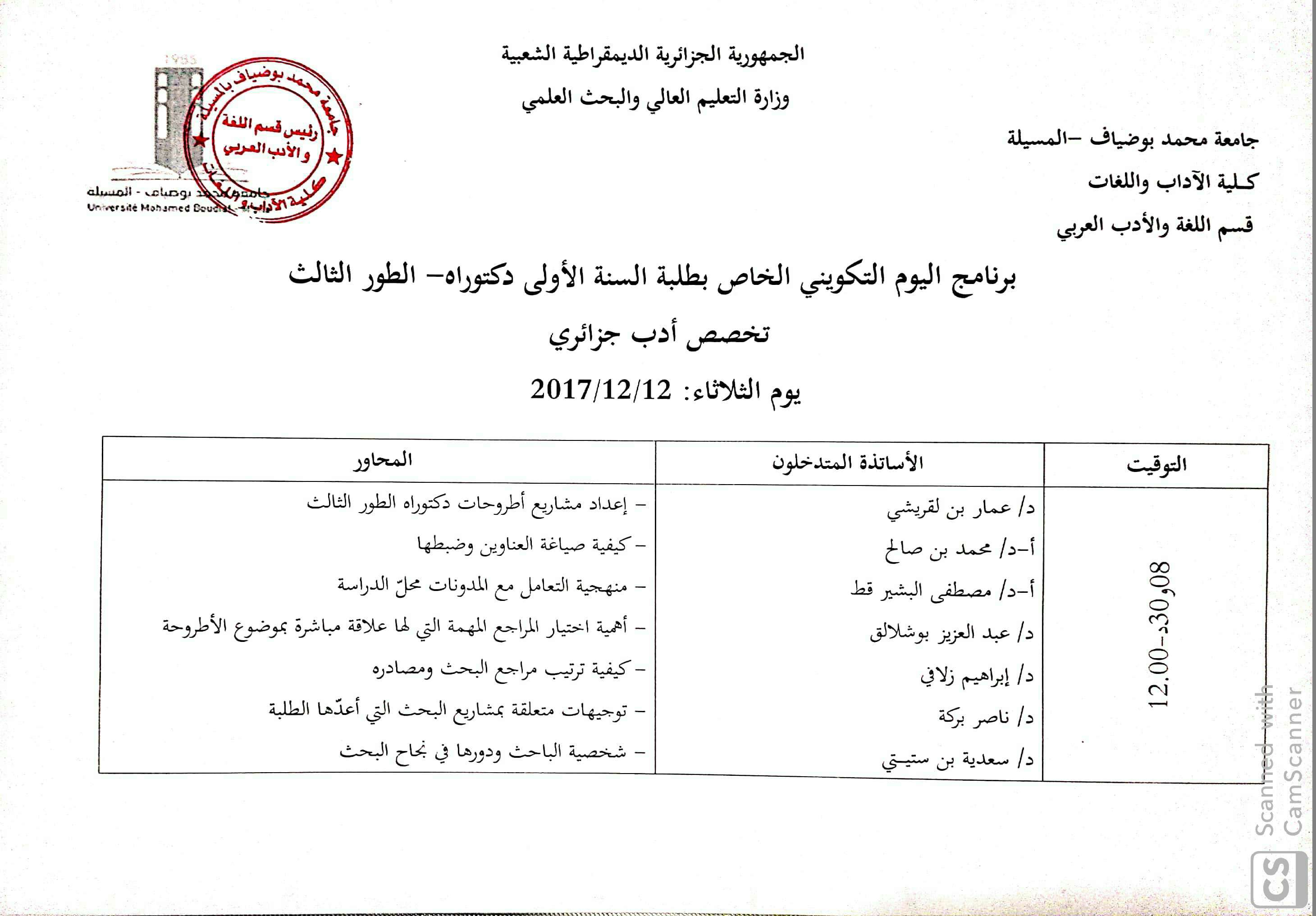 M. ZELAFI Brahim, (2017), "قضايا المنهجية وتقنيات البحث", [national] يوم تكويني لطلبة الدكتوراه متابعة سير مشاريع البحث , جامعة محمد بوضياف بالمسيلة