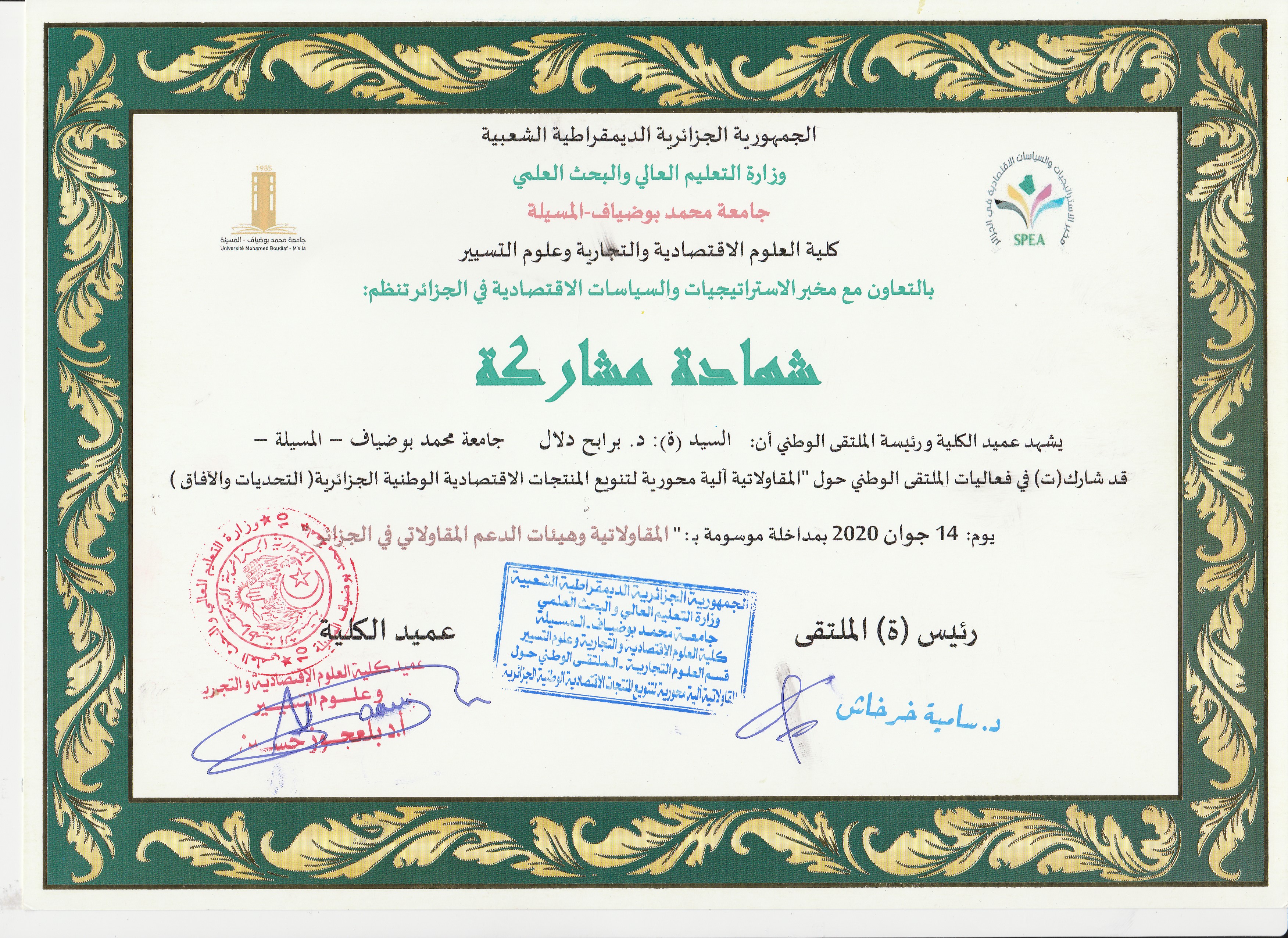 M. BERRABEH Dalal, (2020), "المقاولاتية وهيئات الدعم المقاولاتي في الجزائر", [national] المقاولاتية آلية محورية لتنويع المنتجات الاقتصادية الوطنية الجزائرية , جامعة المسيلة