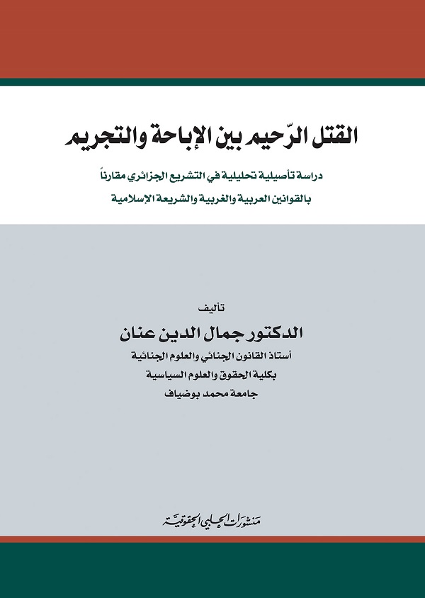 M. DJAMELEDDINE Anane, (2020), "القتل الرحيم بين الإباحة والتجريم (دراسة تأصيلية تحليلية في القانون الجزائري مقارنا بالقوانين العربية والغربية والشريعة الإسلامية)", [national] , منشورات الحلبي الحقوقية (بيروت - لبنان)