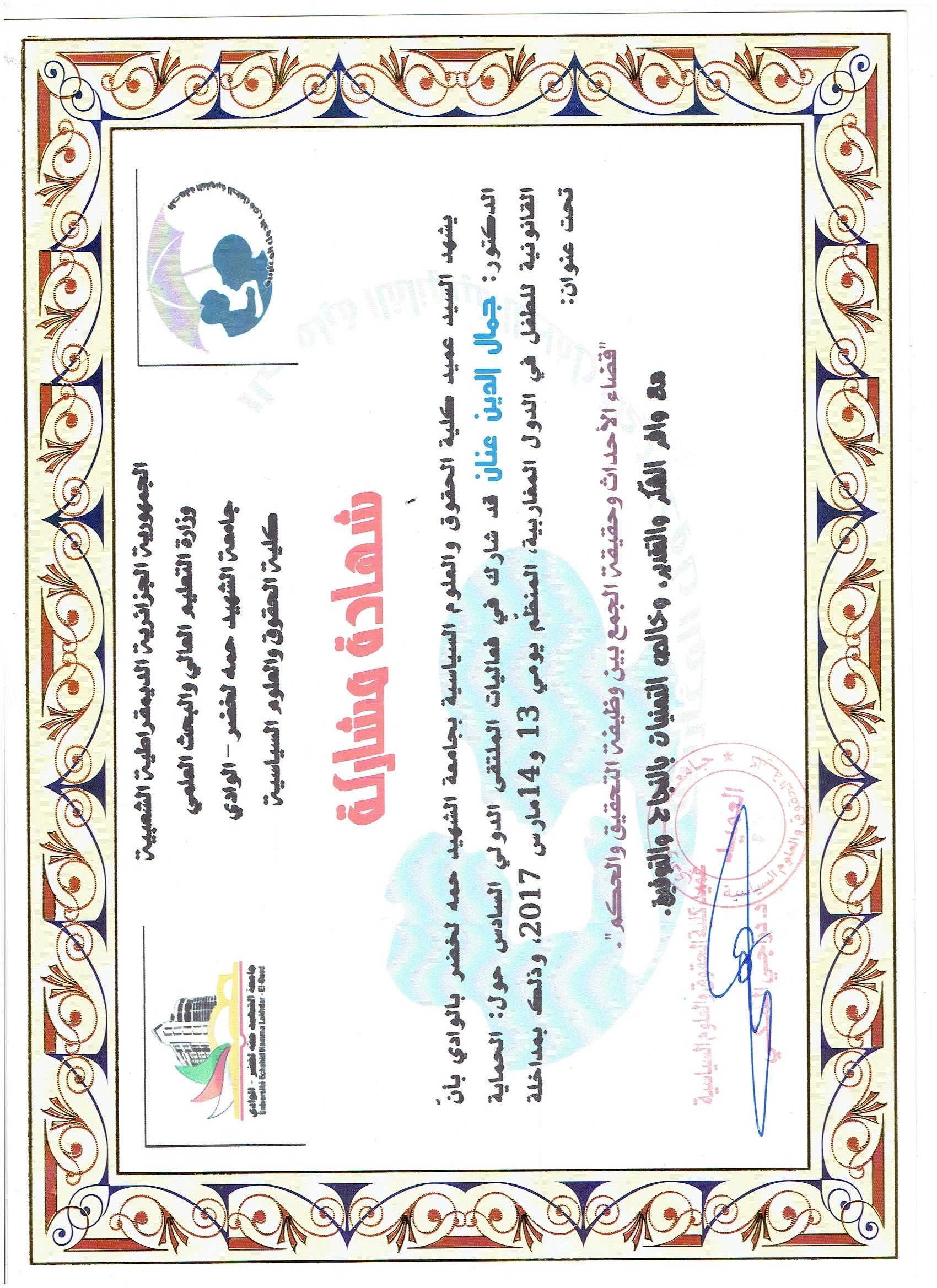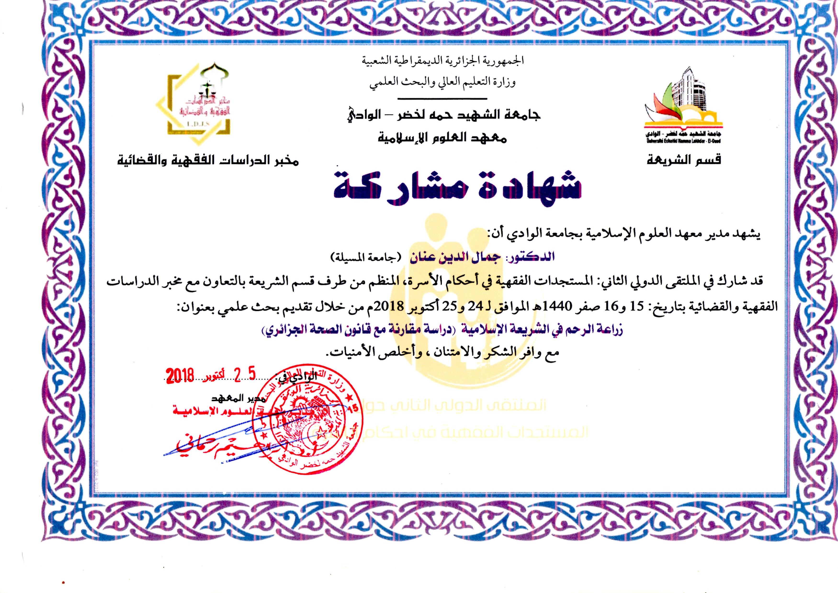 M. DJAMELEDDINE Anane, (2018), "زراعة الرحم في الشريعة الإسلامية (دراسة مقارنة مع قانون الصحة الجزائري)", [international] جمال الدين عنان , معهد العلوم الإسلامية بجامعة الوادي