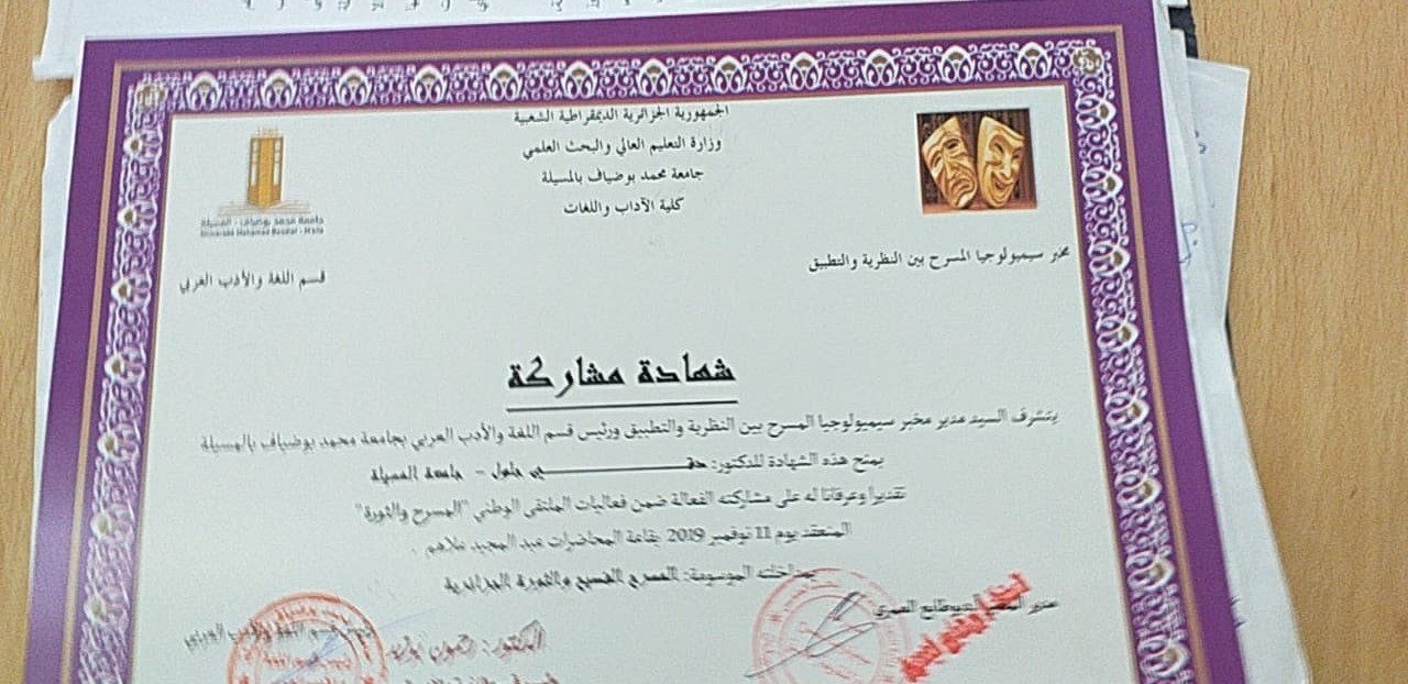 M. DEKKI Djelloul, (2019), "المسرح في المقرارات الجامعية", [national] المسرح الجامعي بين الفرج والمتعة وصناعة الوعي , جامعة محمد بوضياف المسيلة