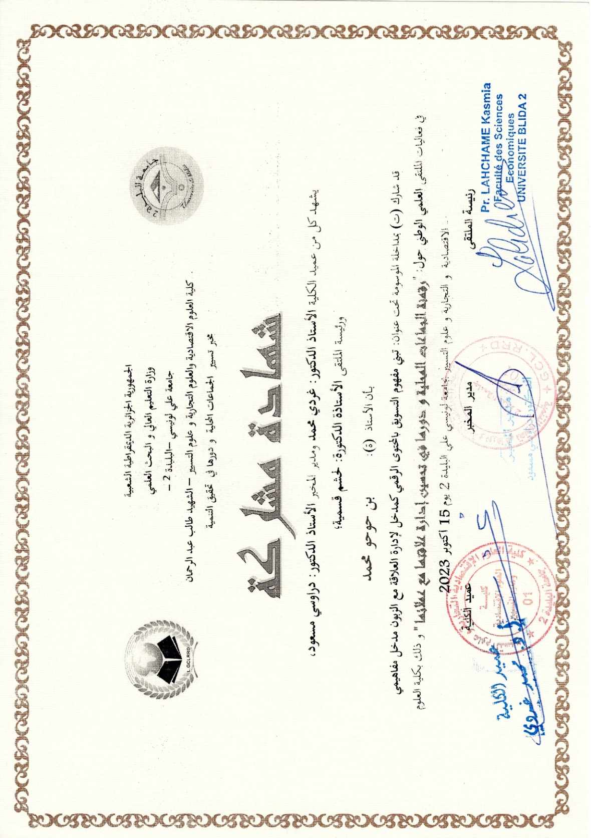 M. BENHOUHOU Mohamed, (2023-03-07), "صناعة وتسويق المحتوى والخدمات التكنولوجية", [national] جامعة محمد بوضياف بالمسيلة