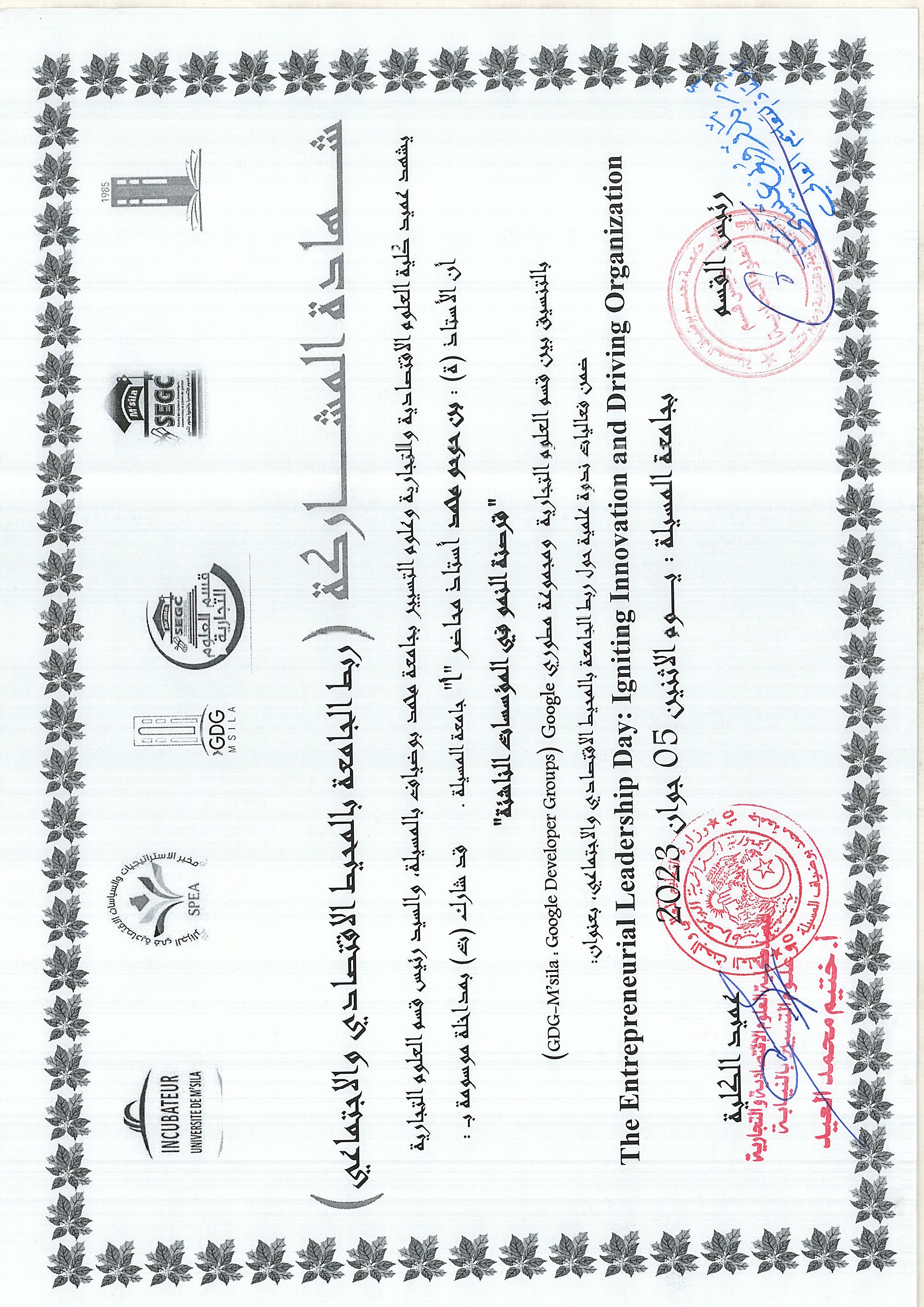 M. BENHOUHOU Mohamed, (2023-05-06), "قرصنة النمو في المؤسسات الناشئة", [national] Igniting Innovation and Driving Organization , جامعة محمد بوضياف بالمسيلة