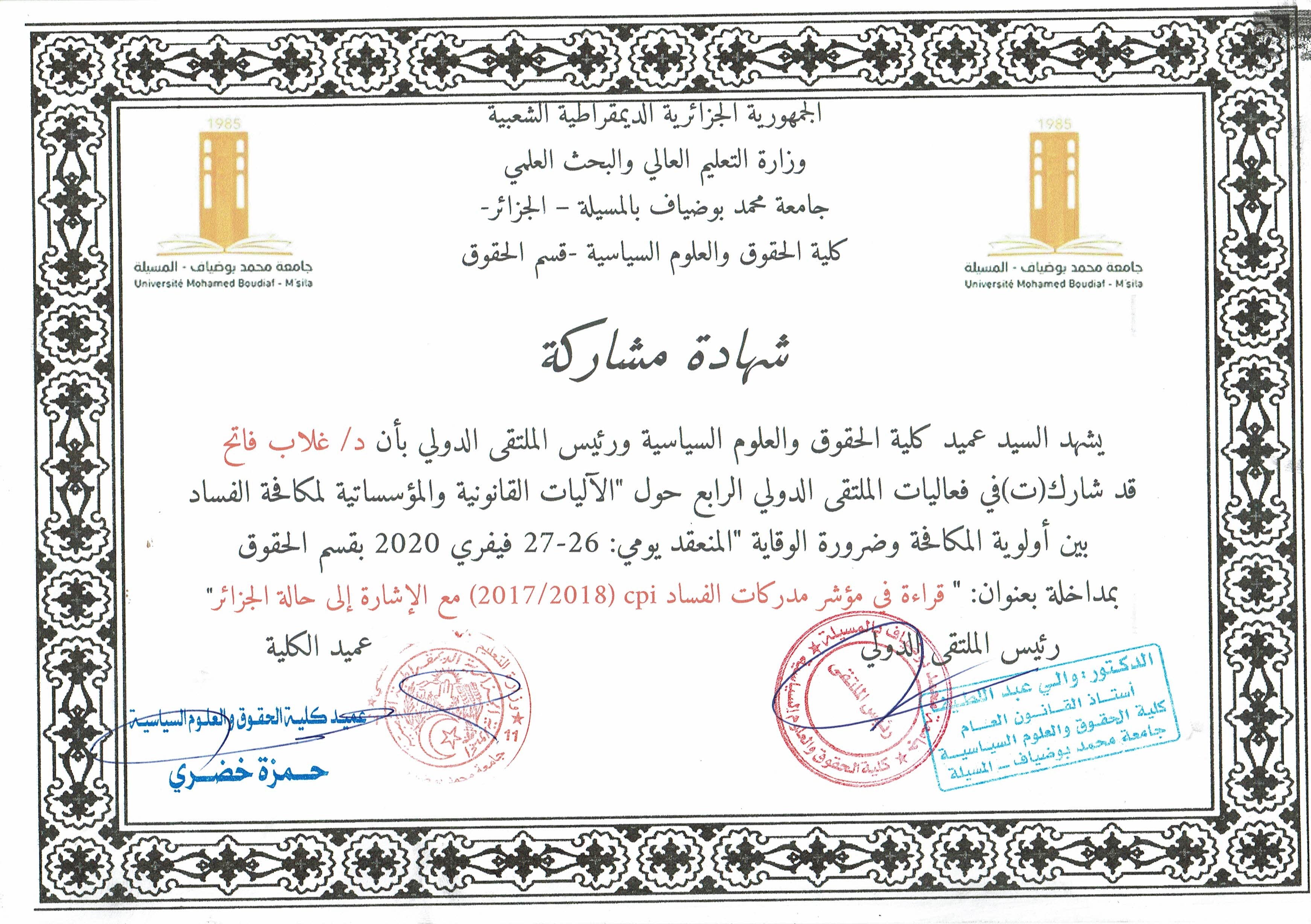 M. GHELAB Fatih, (2020), "قراءة في مؤشر مدركات الفساد CPI (2017/2018)- مع الإشارة الى حالة الجزائر", [international] حول الاليات القانونية والمؤسساتية لمكافحة الفساد بين أولوية المكافحة وضرورة الوقاية , جامعة محمد بوضياف المسيلة