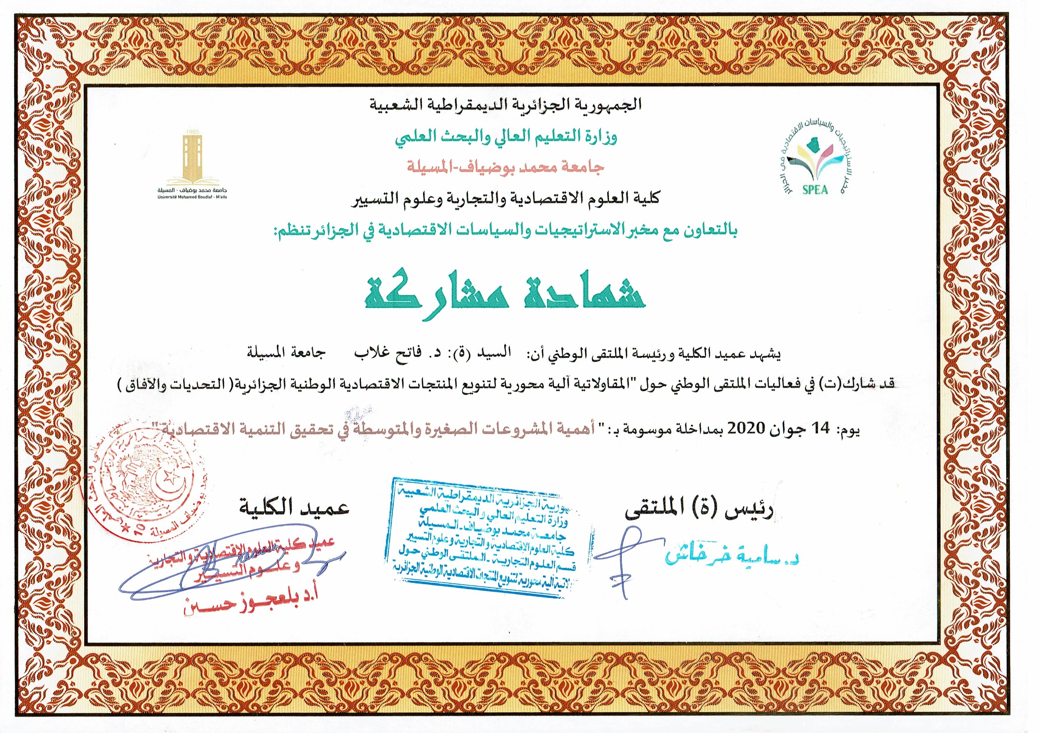 M. GHELAB Fatih, (2021), "تاريخ الوقائع الاقتصادية", [national] جامعة المسيلة
