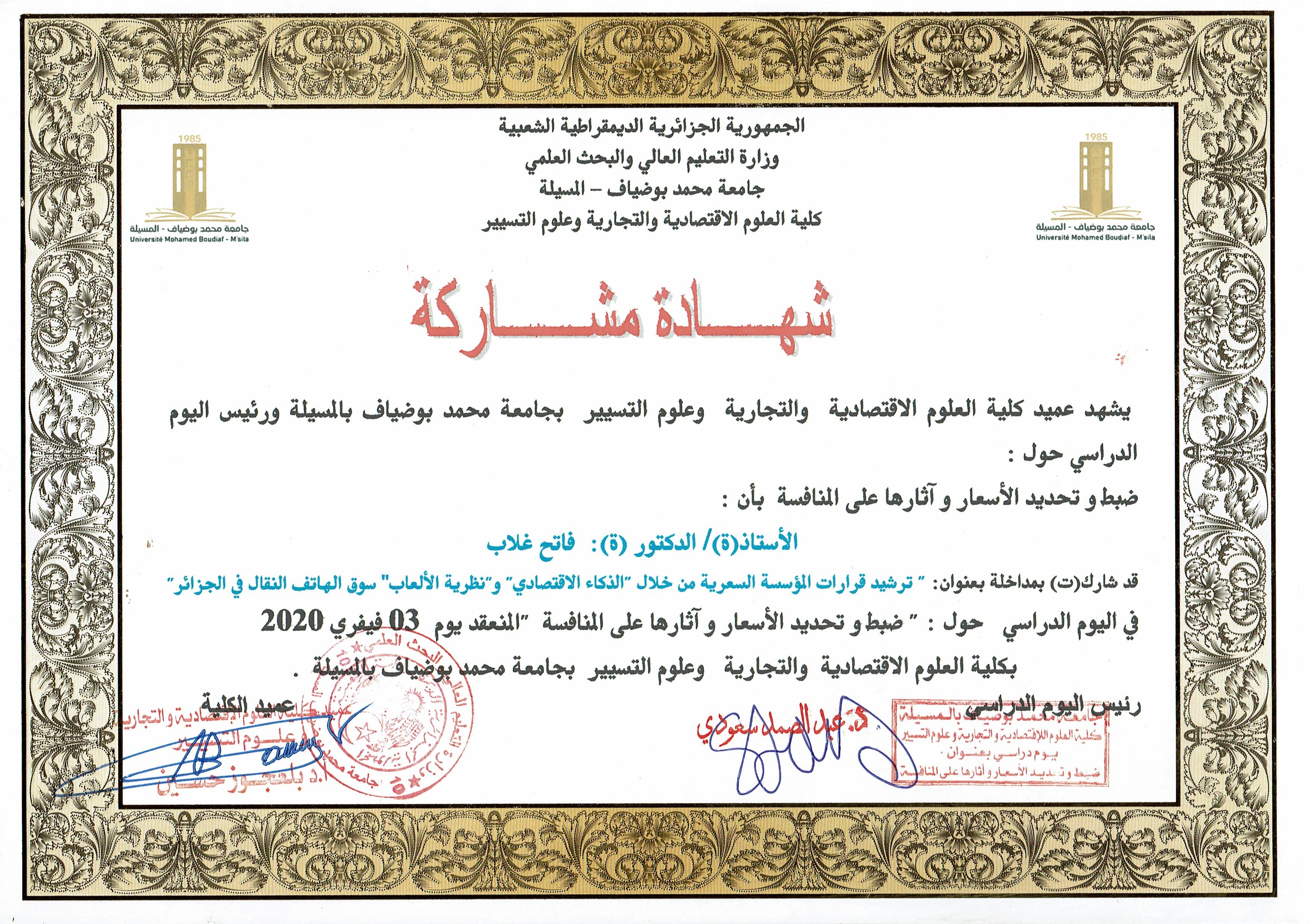 M. GHELAB Fatih, (2020), "ترشيد قرارات المؤسسة السعرية", [national] ضبط الاسعار وأثارها على المنافسة , جامعة محمد بوضياف المسيلة