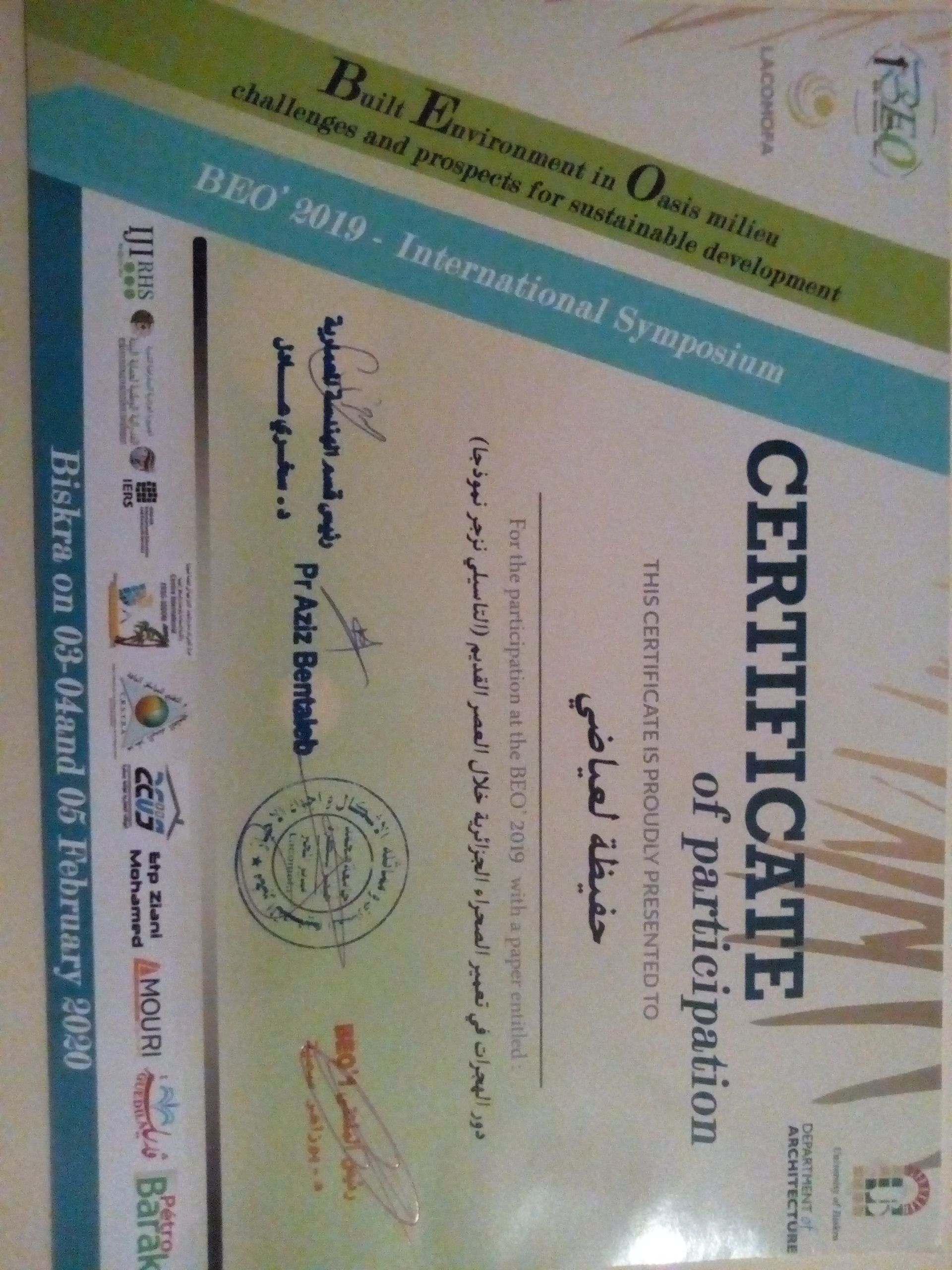 M. LAIADHI Hafidha, (2020), "دور الهجرات في تعمير الصحراء الجزائرية خلال العصر القديم (التاسيلي نزجر انموذجا)", [international] BEO' 2019- International Symposium ,Built Environment in Oasis milieu challenges and prospects for sustainable development , Biskra- l'Algérie