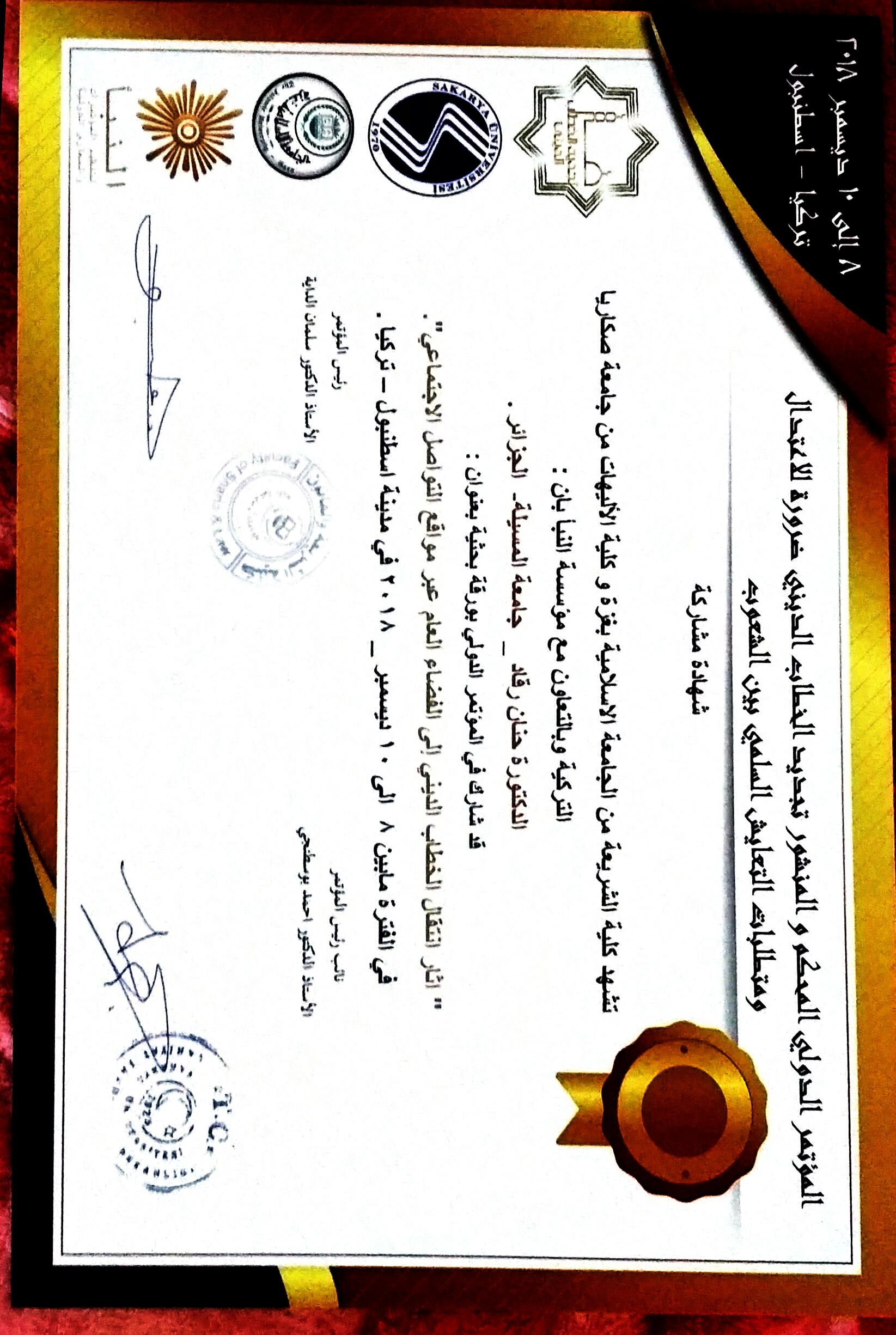 M. REGGAD Hanane, (2018), "اثار انتقال الخطاب الديني إلى الفضاء العام عبر مواقع التواصل الاجتماعي", [international] تجديد الخطاب الديني ،ضرورة للاعتدال ومتطلبات التعايش السلمي بين الشعوب , اسطمبول تركيا