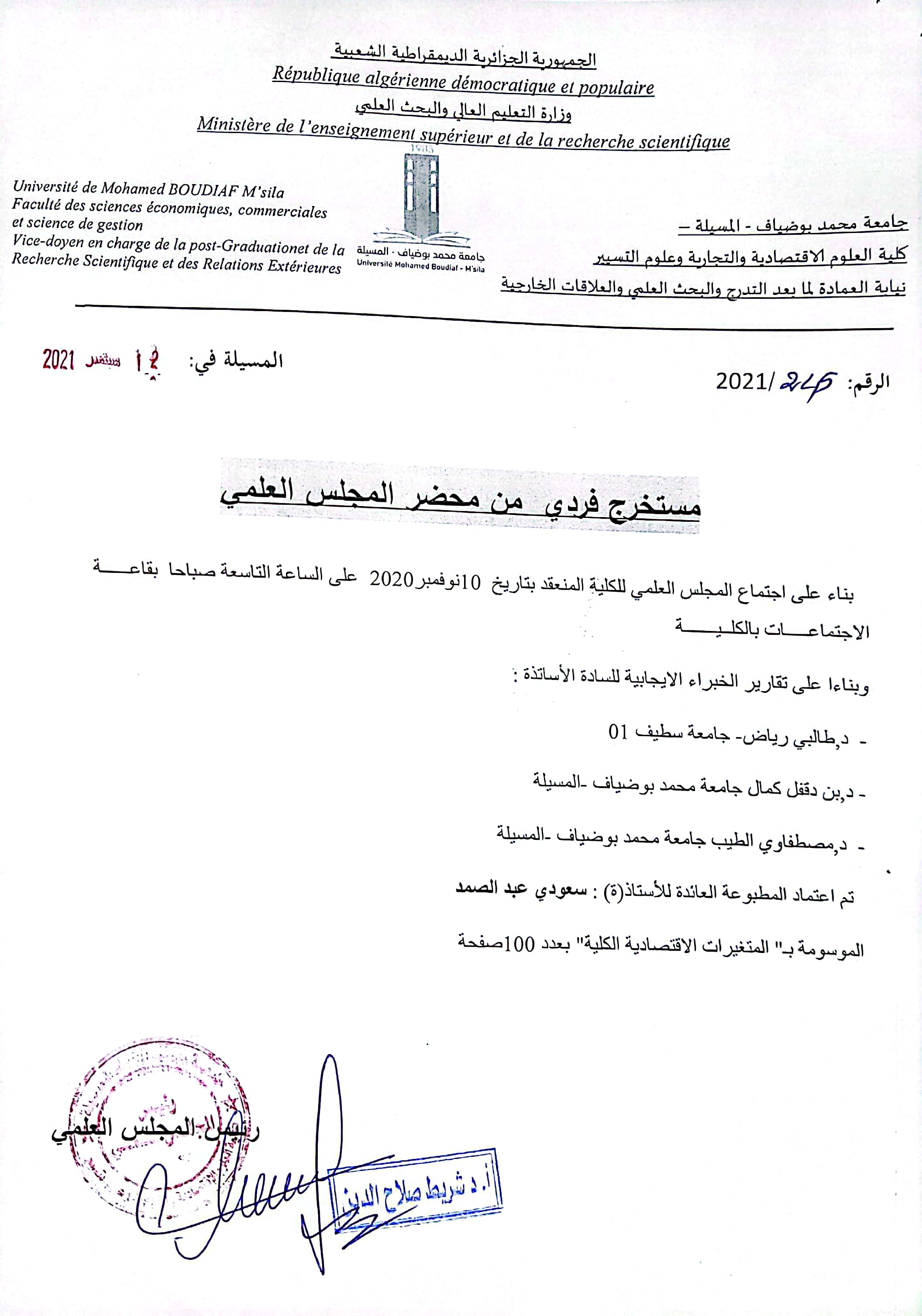 M. SAOUDI Abdessamed, (2021), "المتغيرات الاقتصادية الكلية", [national] جامعة المسيلة