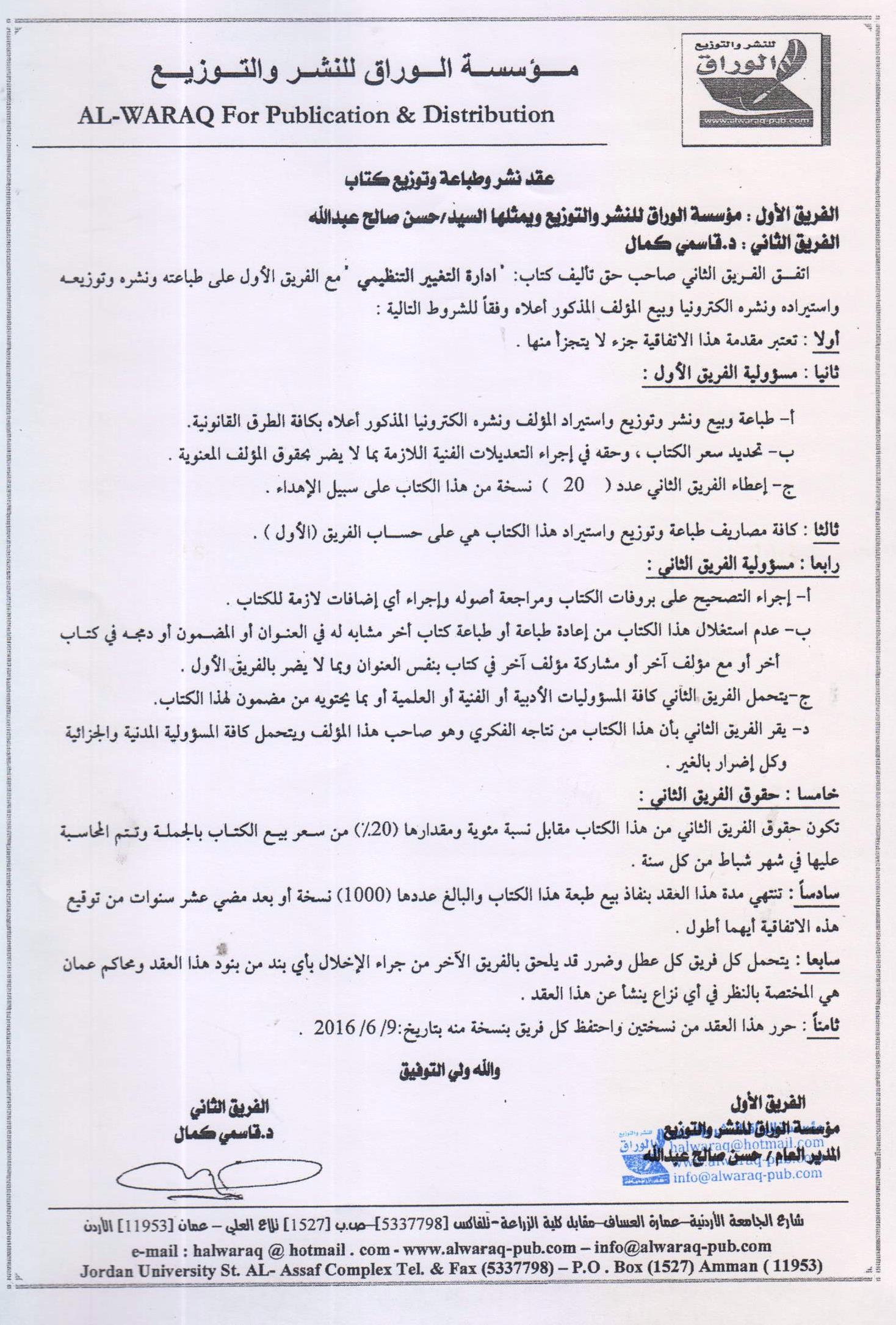 M. GASMI Kamel, (2016), "إدارة التغيير التنظيمي", [national] , الوراق للنشر والتوزيع