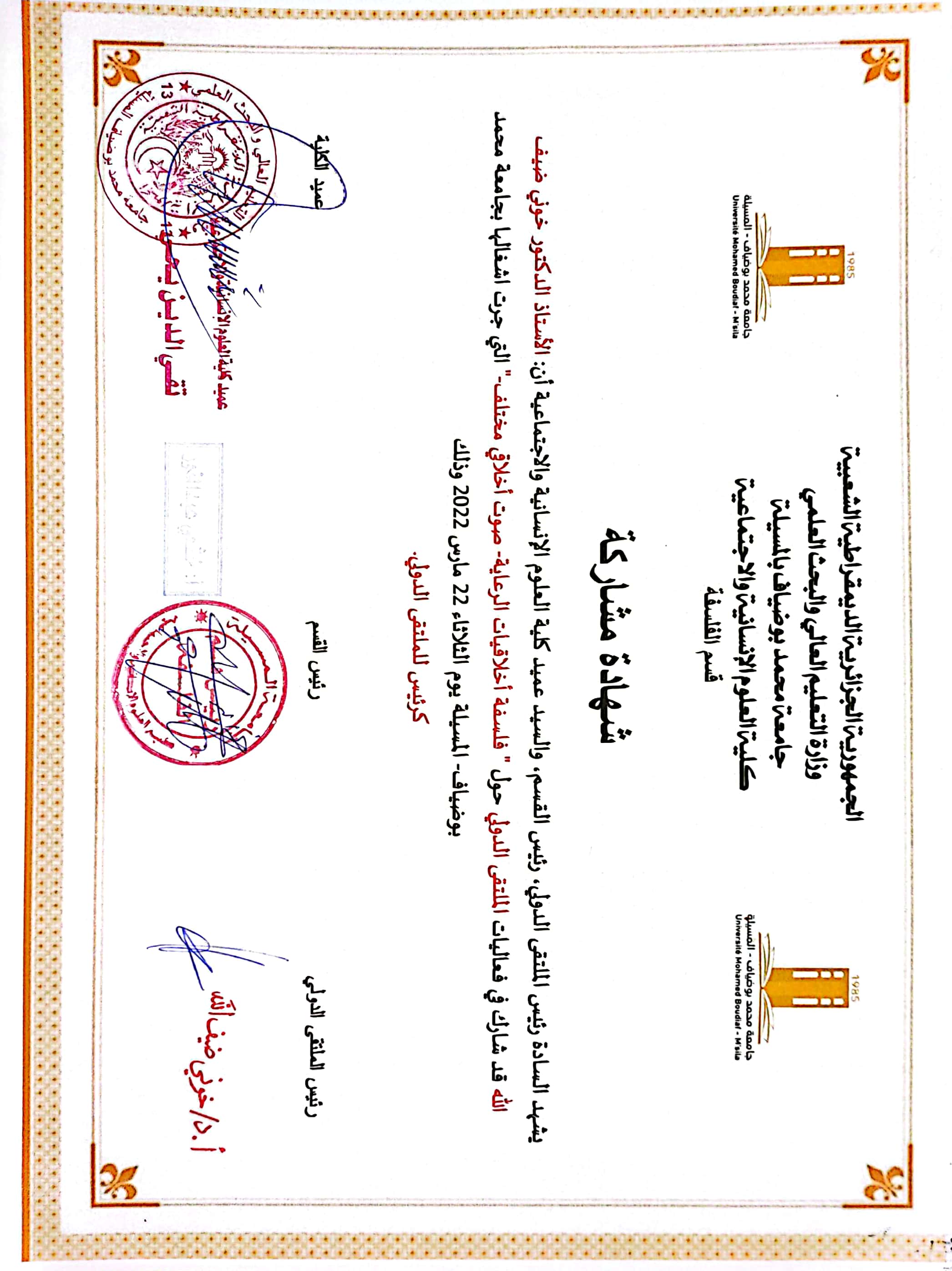 M. DIFFALAH Khaouni, (2022), "فلسفة أخلاقيات الرعاية صوت اخلاقي مختلف", [international] فلسفة أخلاقيات الرعاية صوت اخلاقي مختلف , جامعة المسيلة