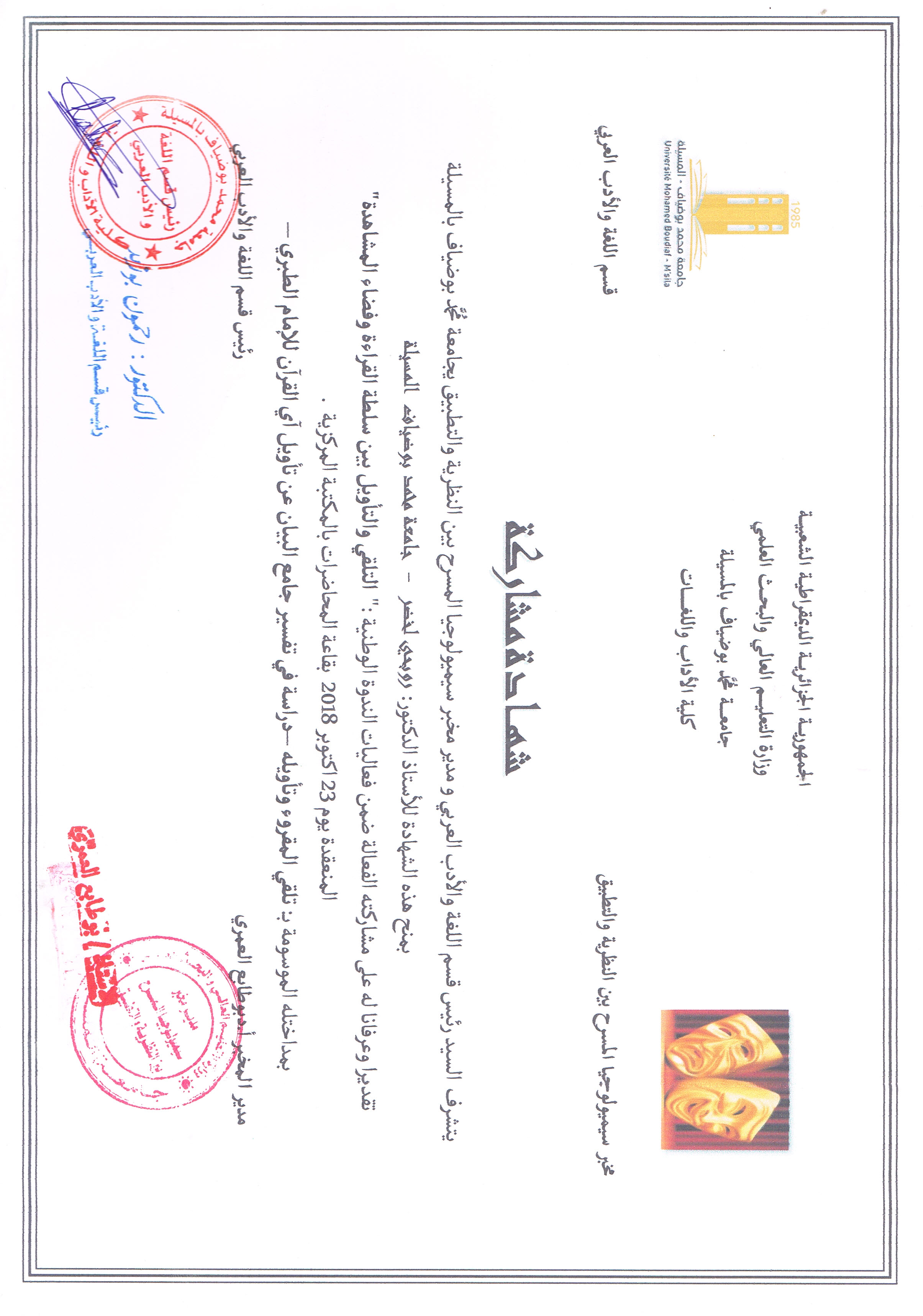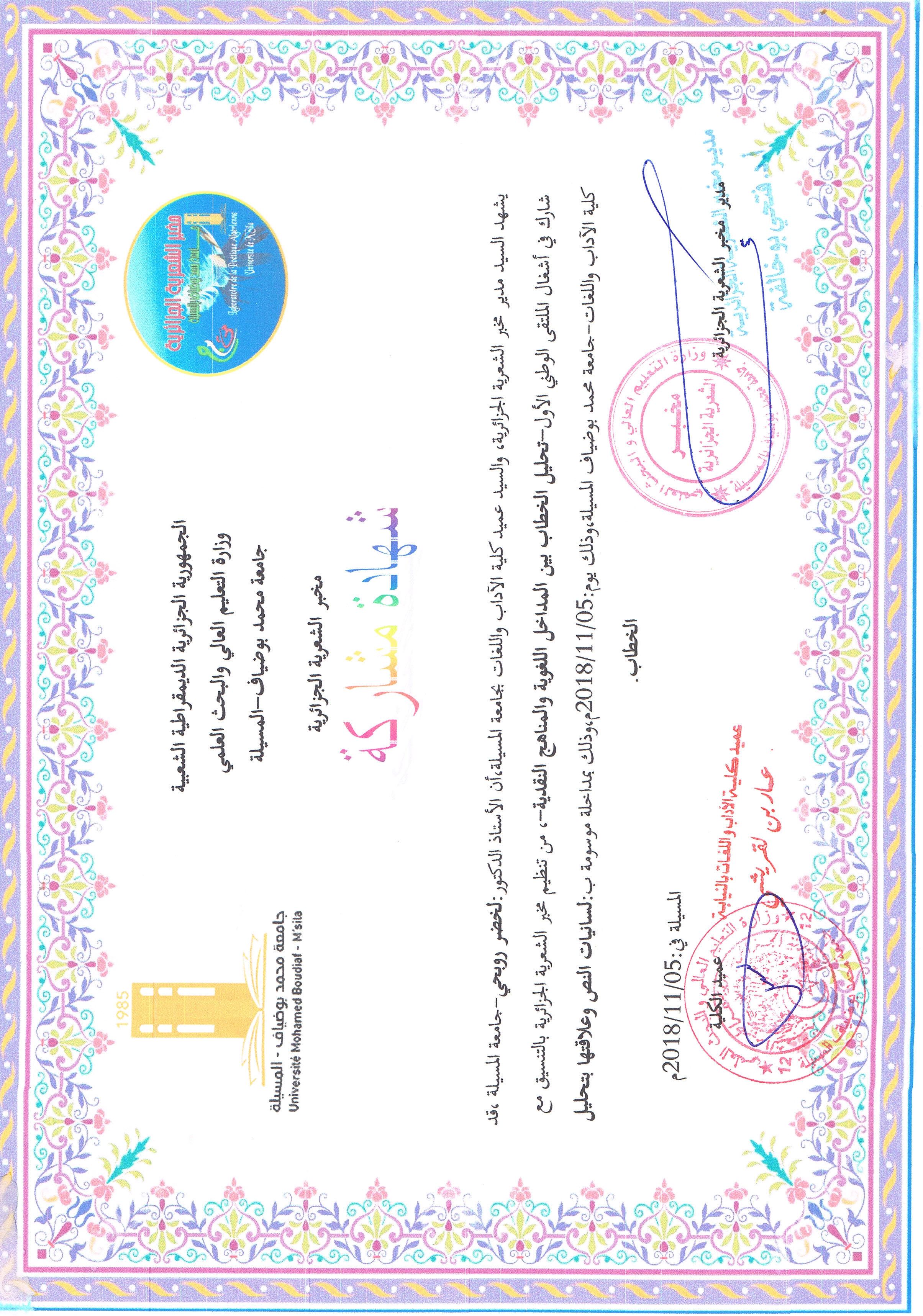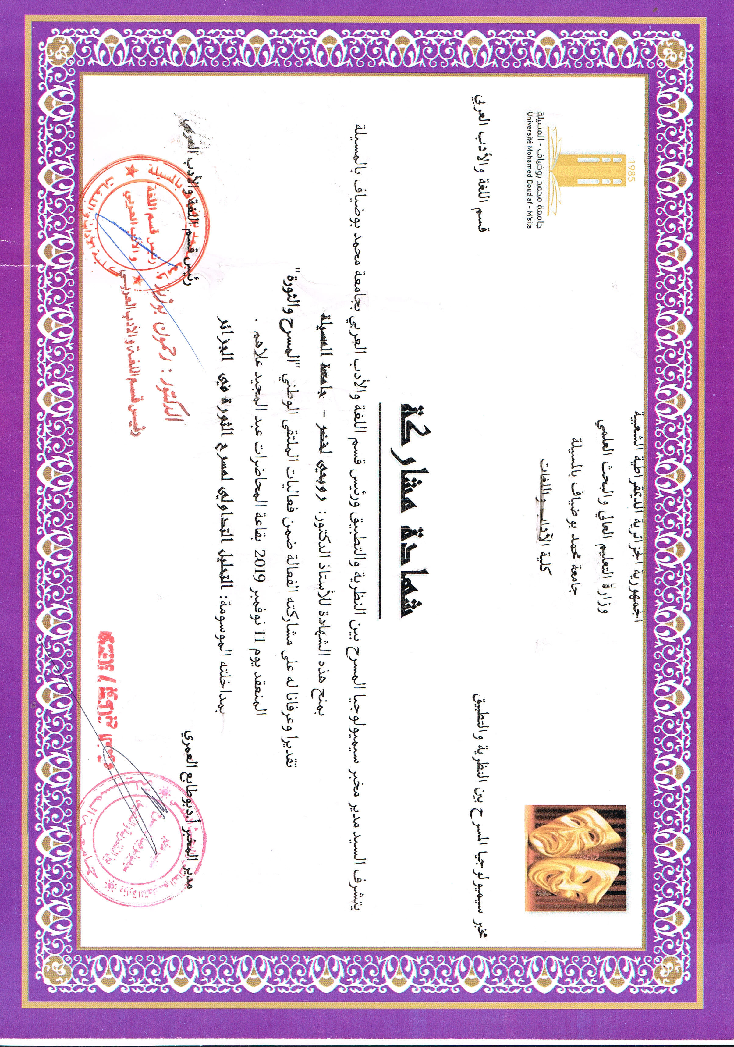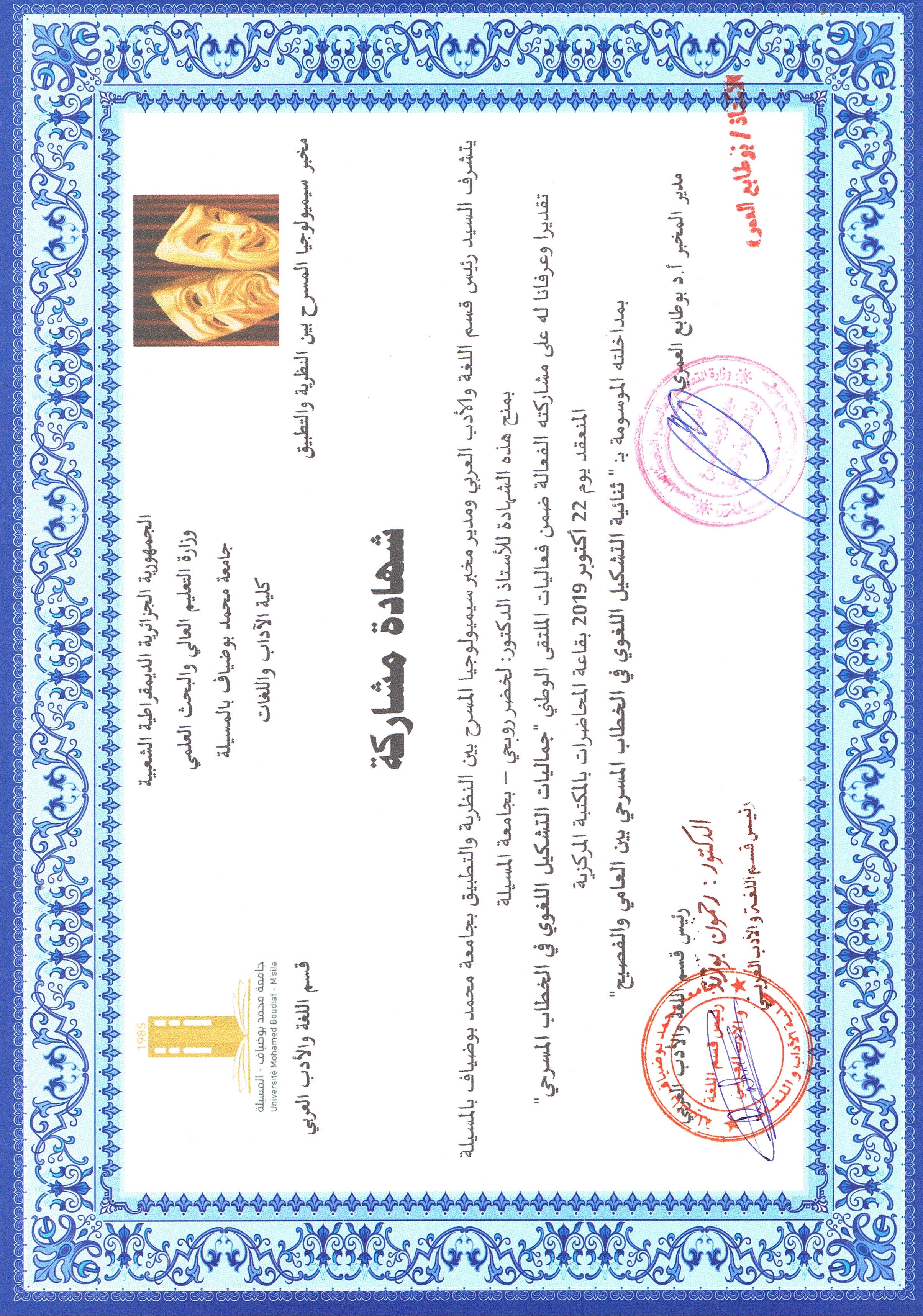 M. ROUBHI Lakhdar, (2019), "ثنائية التشكيل اللغوي في الخطاب المسرحي بين العامي والفصيح", [national] جماليات التشكيل اللغوي في الخطاب المسرحي , جامعة المسيلة
