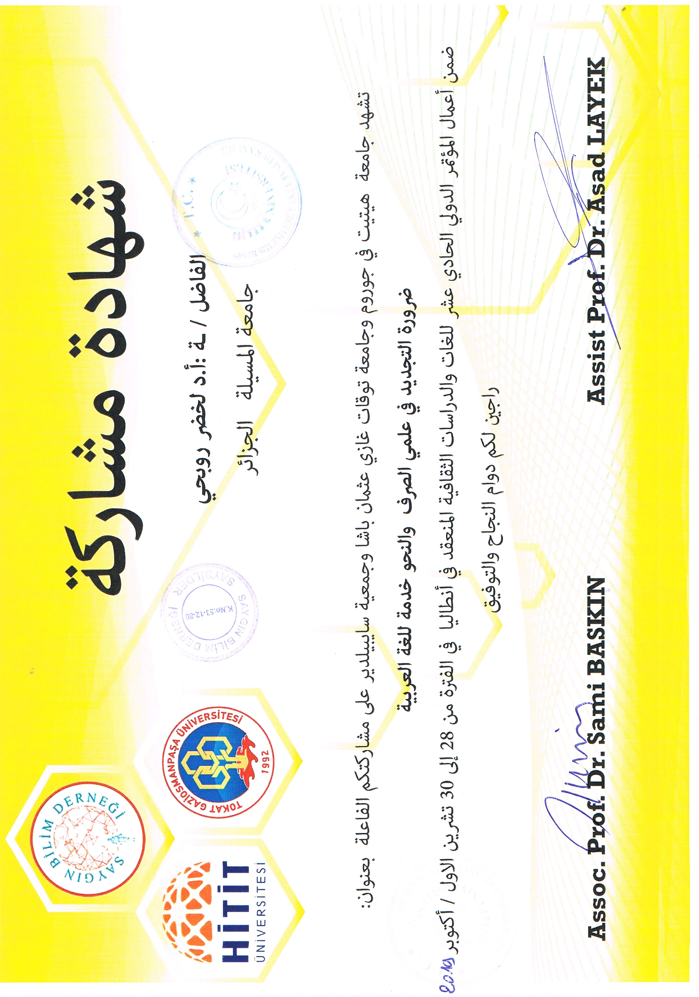 M. ROUBHI Lakhdar, (2019), "ضرورة التجديد في علمي الصرف والنحو خدمة للغة العربية", [international] المؤتمر الدولي الخادي عشر للغات والدراسات الثقافية , جامعة أنطاليا تركيا