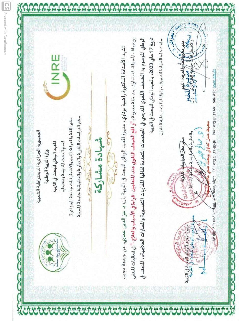 M. AMMARI Azzeddine, (2023-05-17), "واقع الضعف اللغوي عند المتعلمين", [national] الضعف اللغوي المدرسي في المجتمعات المتعددة ثقافيا , المعهد الوطني للبحث في التربية