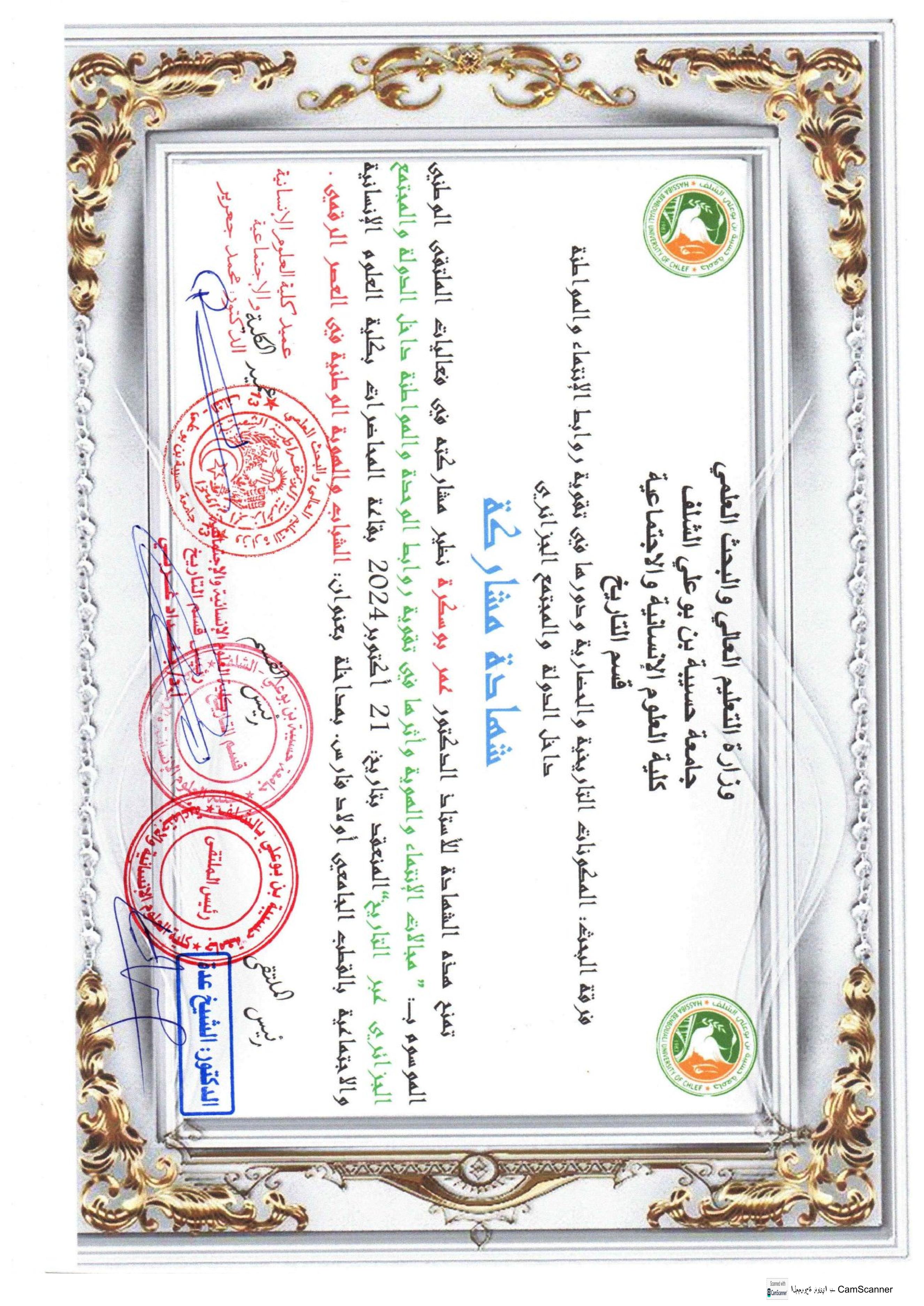 M. BOUSSAKRA Amar, (2024-01-31), "Digitizing the civil status archive as a mechanism to improve the efficiency of public service", [national] الملتقى الوطني حول: " إدارة مشاريع الرقمة في المؤسسات والإدارات العمومية الجزائرية" من تنظيم كلية العلوم الإنسانية الاجتماعية- جامعة ابن خلدون- تيارت , جامعة ابن خلدون- تيارت