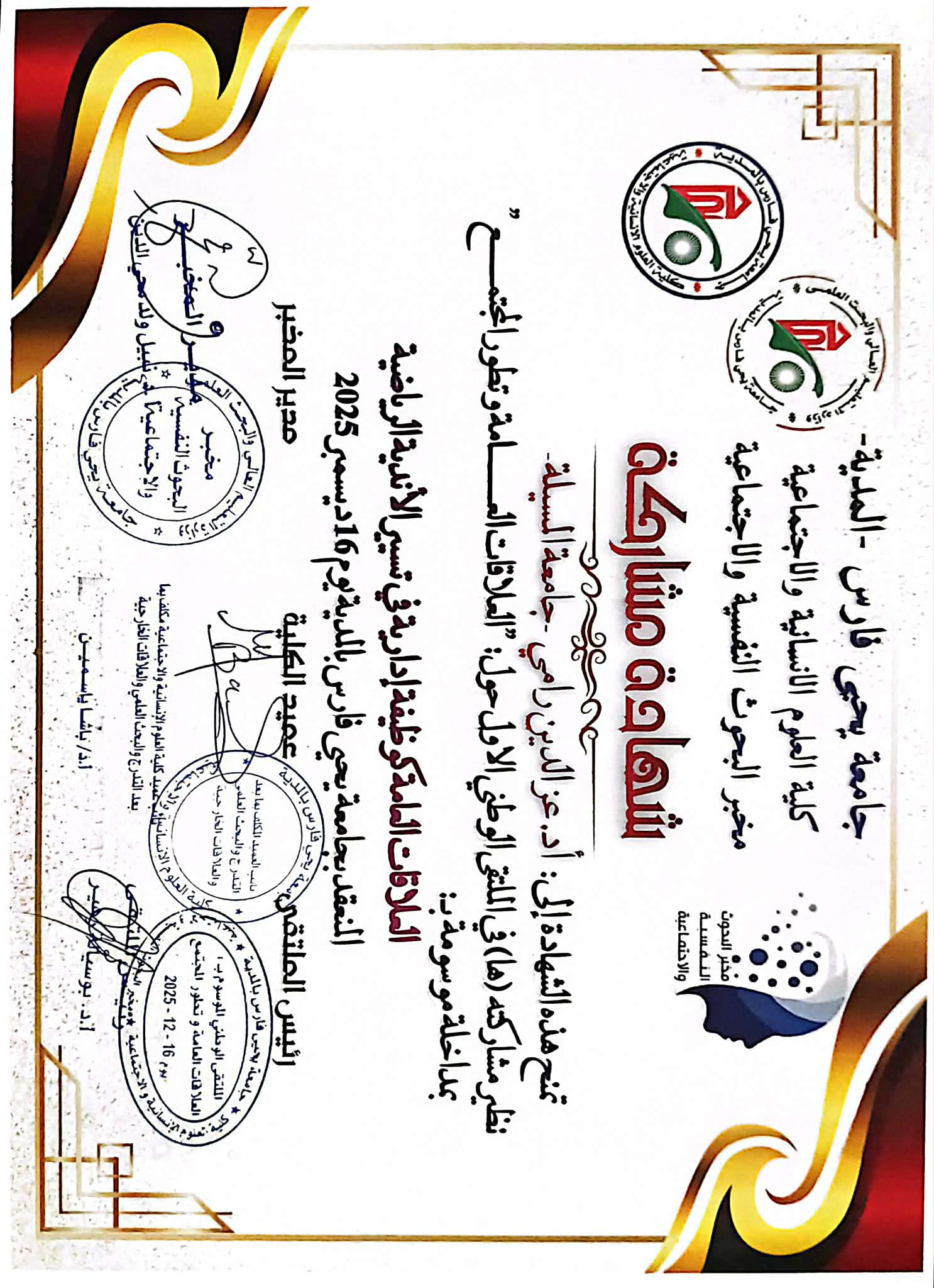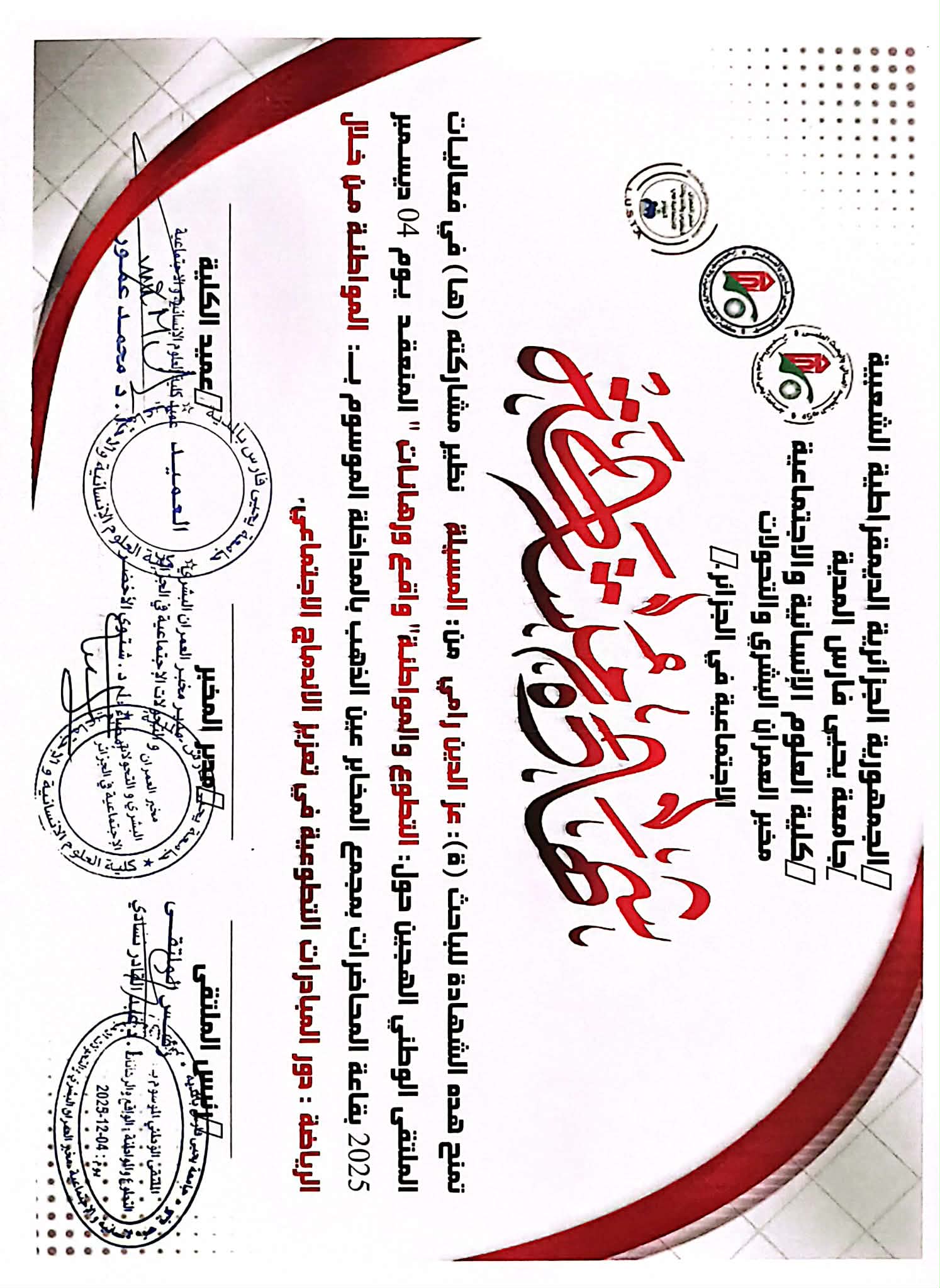 M. RAMI Azeddine, (2025-12-04), "المواطنة من خلال الرياضة: دور المبادرات التطوعية في تعزيز الادماج الاجتماعي", [national] التطوع والمواطنة واقع ورهانات , جامعة المدية