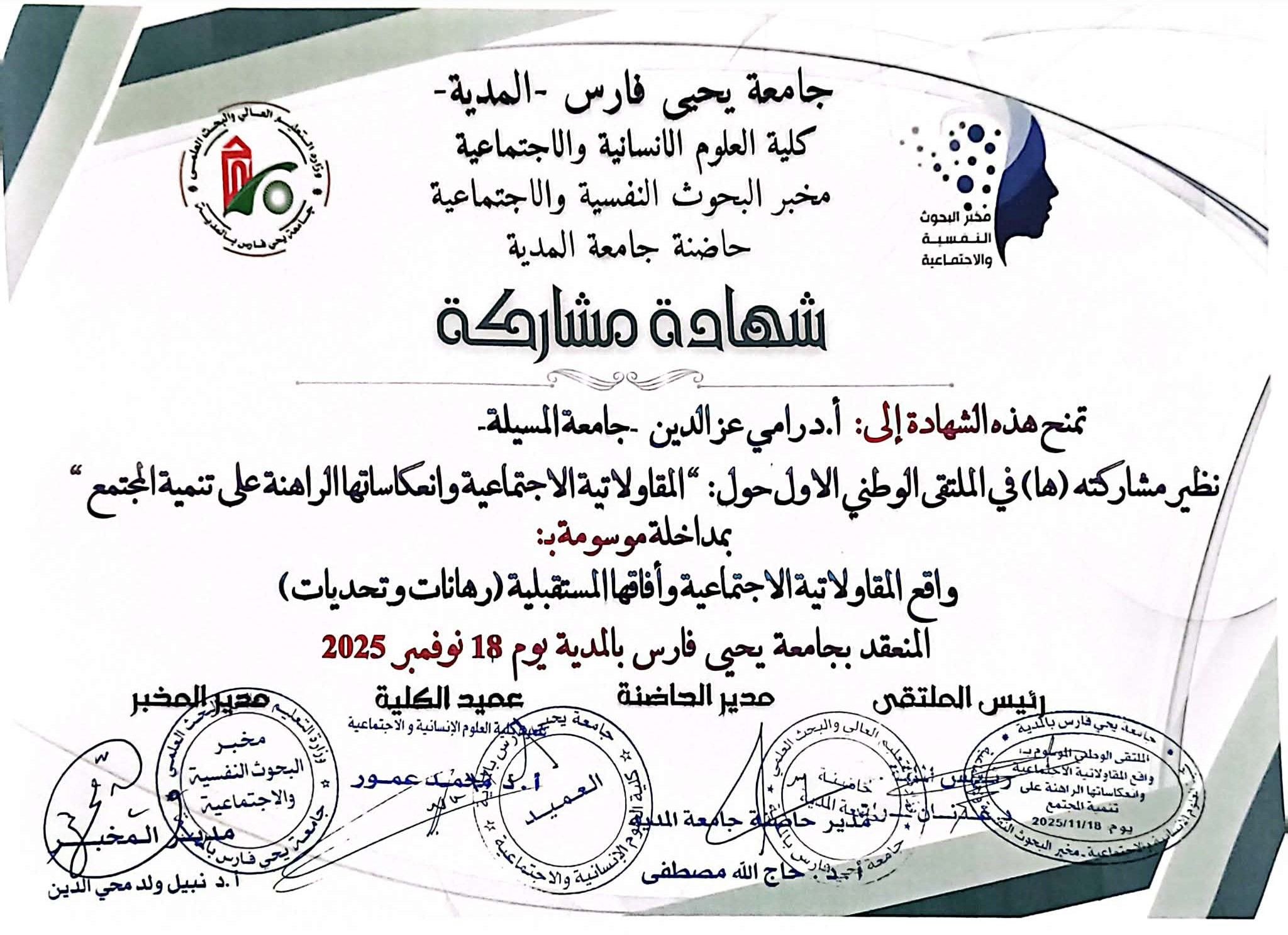 M. RAMI Azeddine, (2025-11-18), "واقع المقاولاتية الاجتماعية وآفاقها المستقبلية (رهانات وتحديات)", [national] المقاولاتية الإجتماعية وانعكاساتها الراهنة على تنمية المجتمع , جامعة المدية